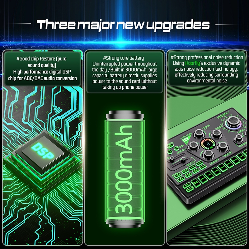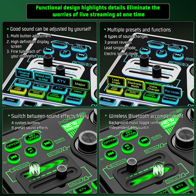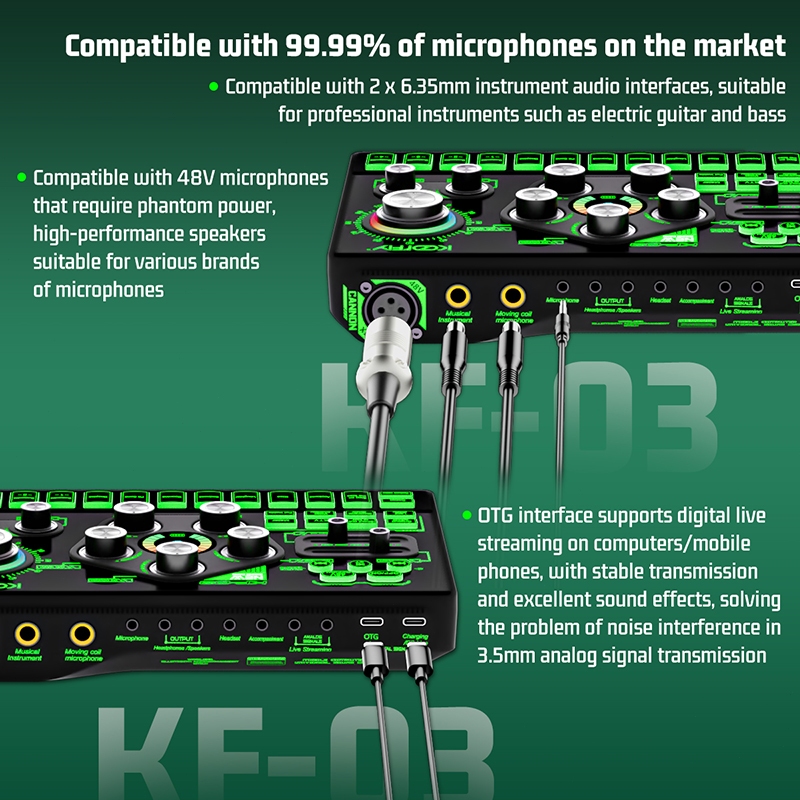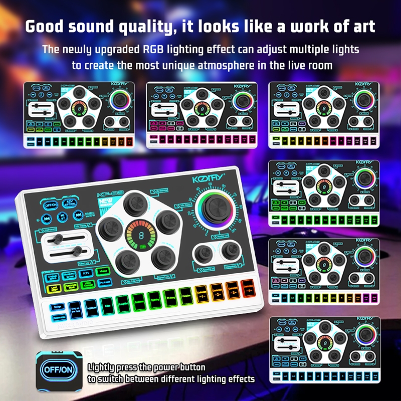 KF03 Desain RGB Terbaru Live Soundcard 48V Recording Live Mixer - 12 Efek RGB/ 4 DIY Efek Suara/ Untuk Alat Musik