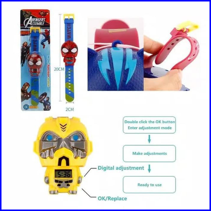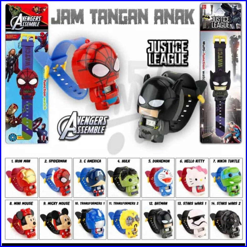 Nuz Jam Tangan Anak Murah Robot Superhero Karakter Lucu Murah Frozen Pony Lol Batman Ironman Banyk Motif