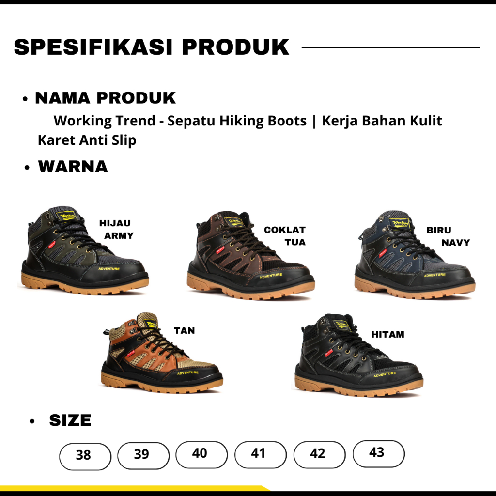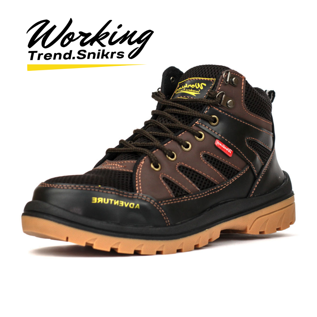 BEST PRODUK Working Trend - Sepatu Hiking Boots | Kerja Bahan Kulit Karet Anti Slip