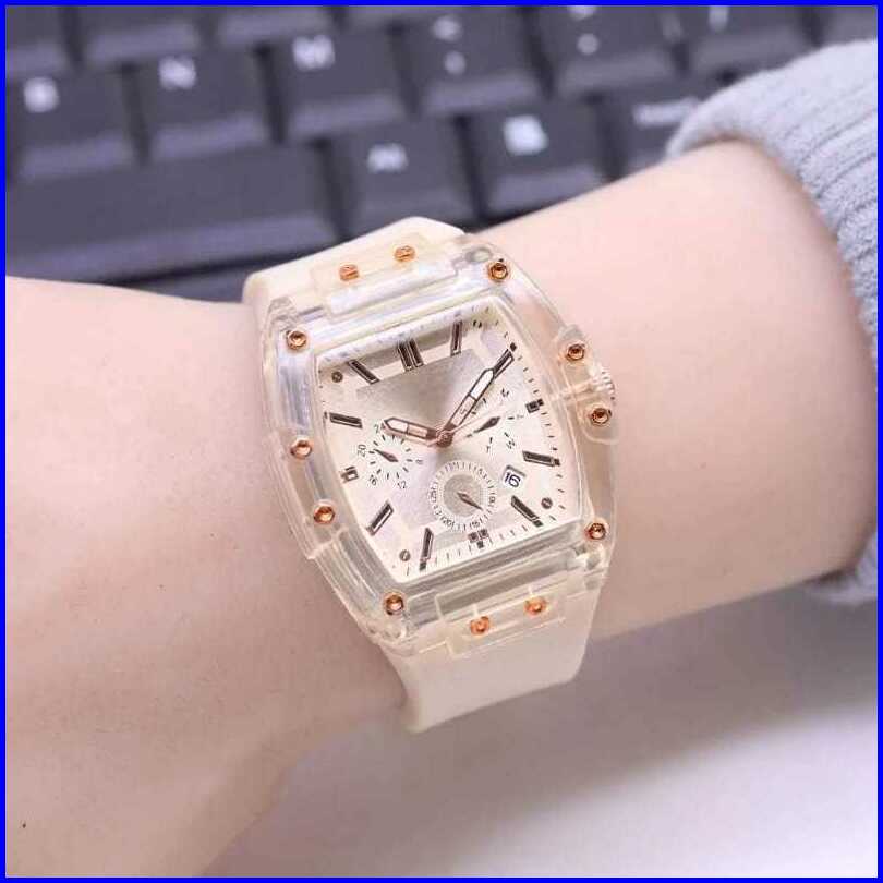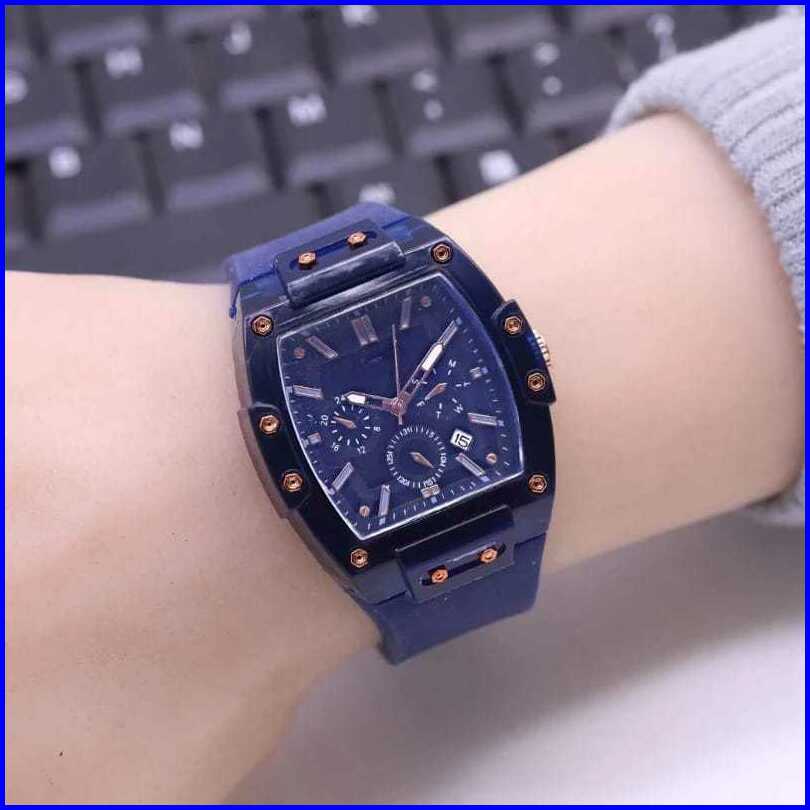 Jam Tangan Wanita Guess Strap Rubber Tanggal Aktif Chrono Varian Free Box Free Baterai Cadangan
