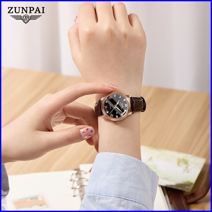 Zunpai Jam Tangan Wanita Original Anti Air Bermerek Impor Elegan Mewah Wanita High-end Kulit Sabuk Terbaru Kuarsa Arloji