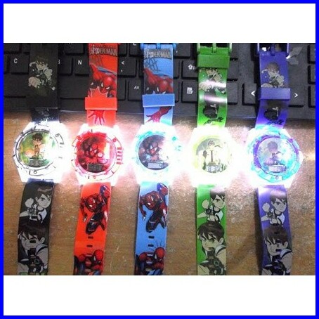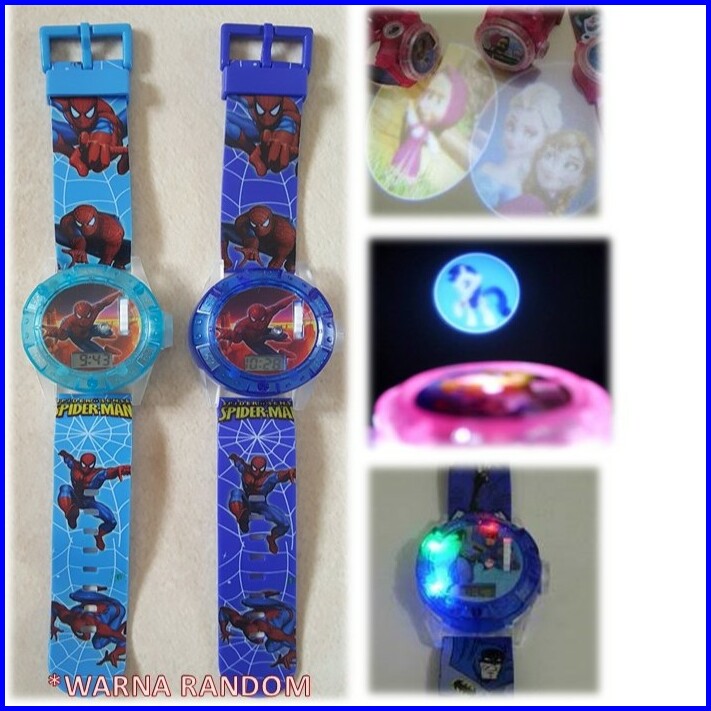 Wbs Jam Tangan Anak Murah Karakter Proyektor Laser Lampu Suara Spiderman Cars Ja008