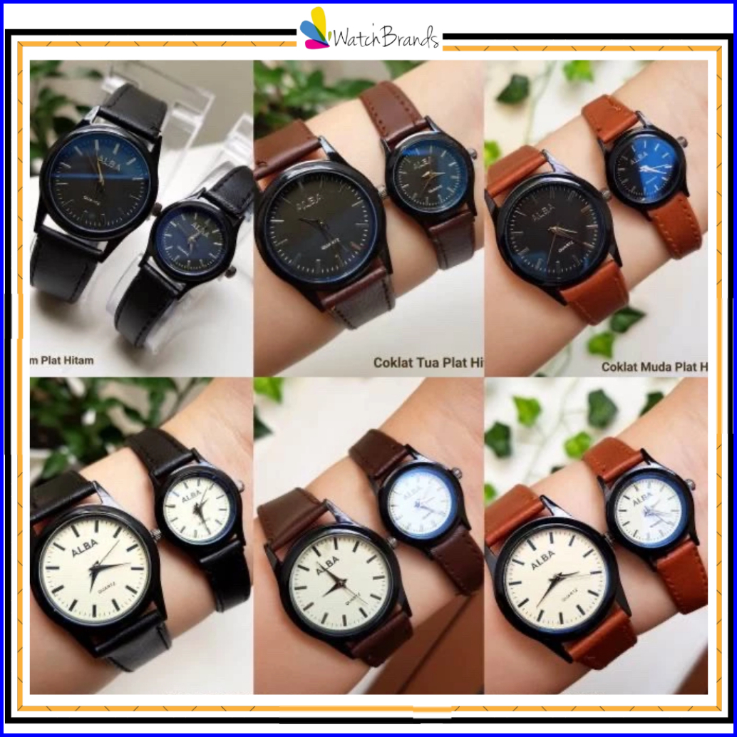 Wbs Jam Tangan Couple Alba Vintage Casual Grosir Kulit Premium Analog Pria Wanita Pasangan Terbaru Anak Remaja Murah Pre