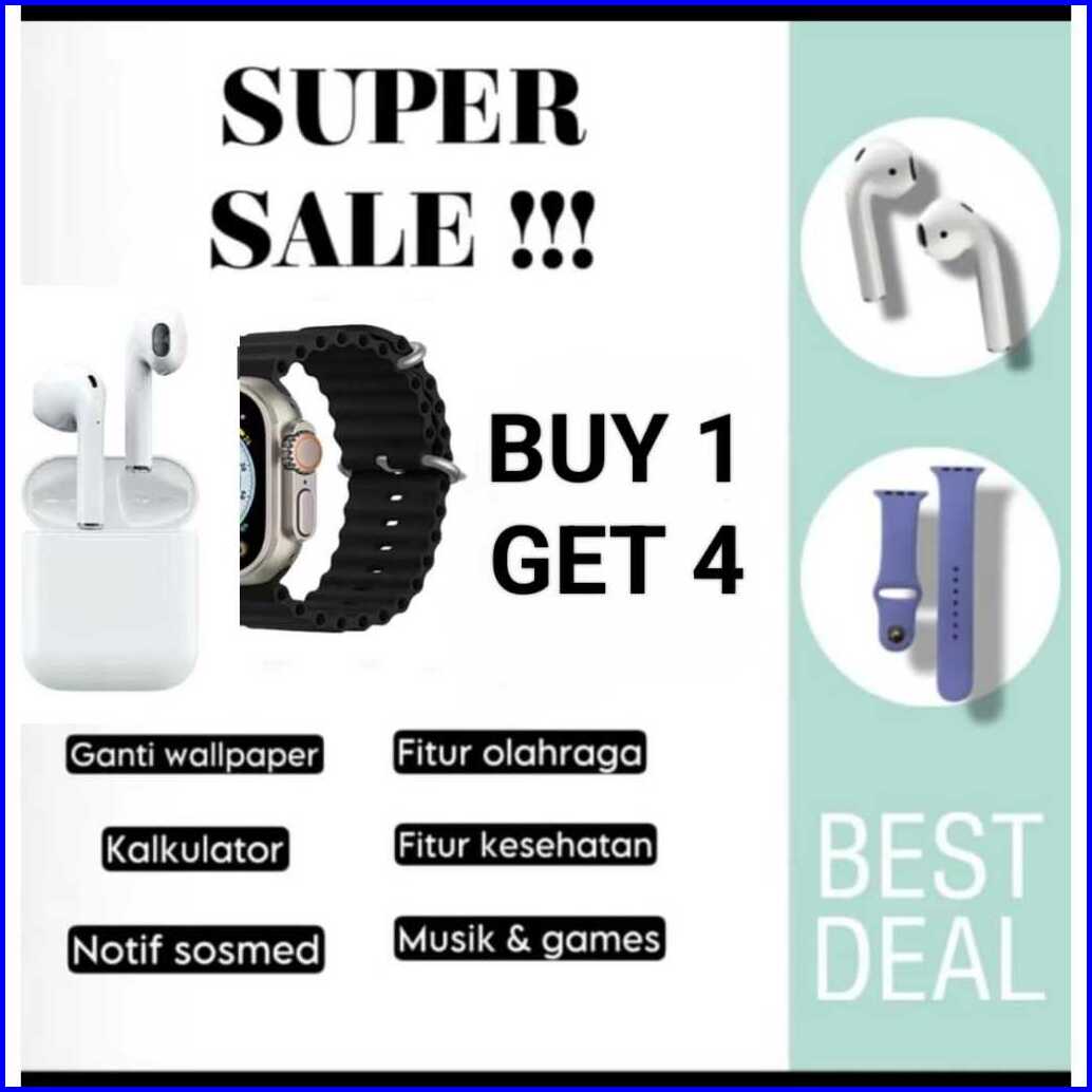 Smartwatch I8 Ultra Watch 8 Free 2 Tali Plus Earphone Tws Full Layar Ada Kalkulator