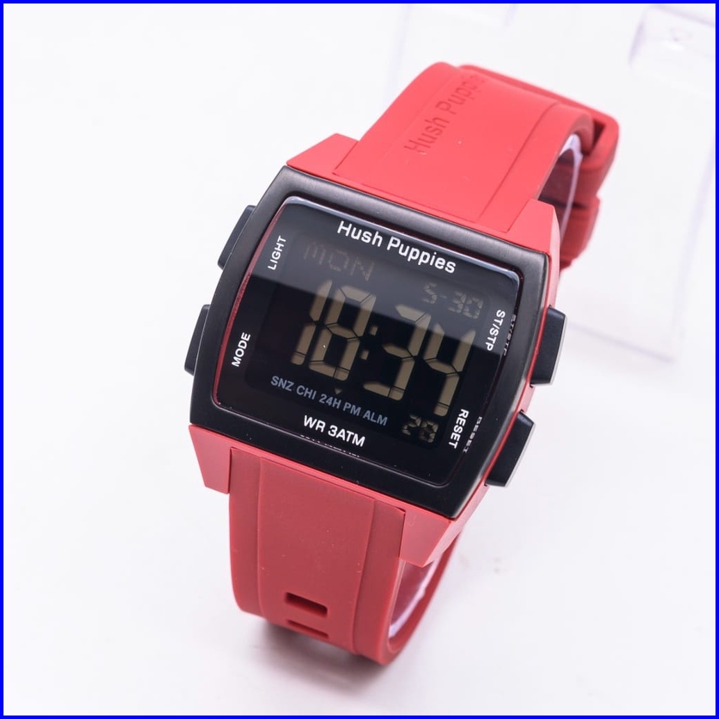 Jam Tangan Wanita Pria Hush Puppies Digital Kotak Strap Rubber Anti Air Hp-2111