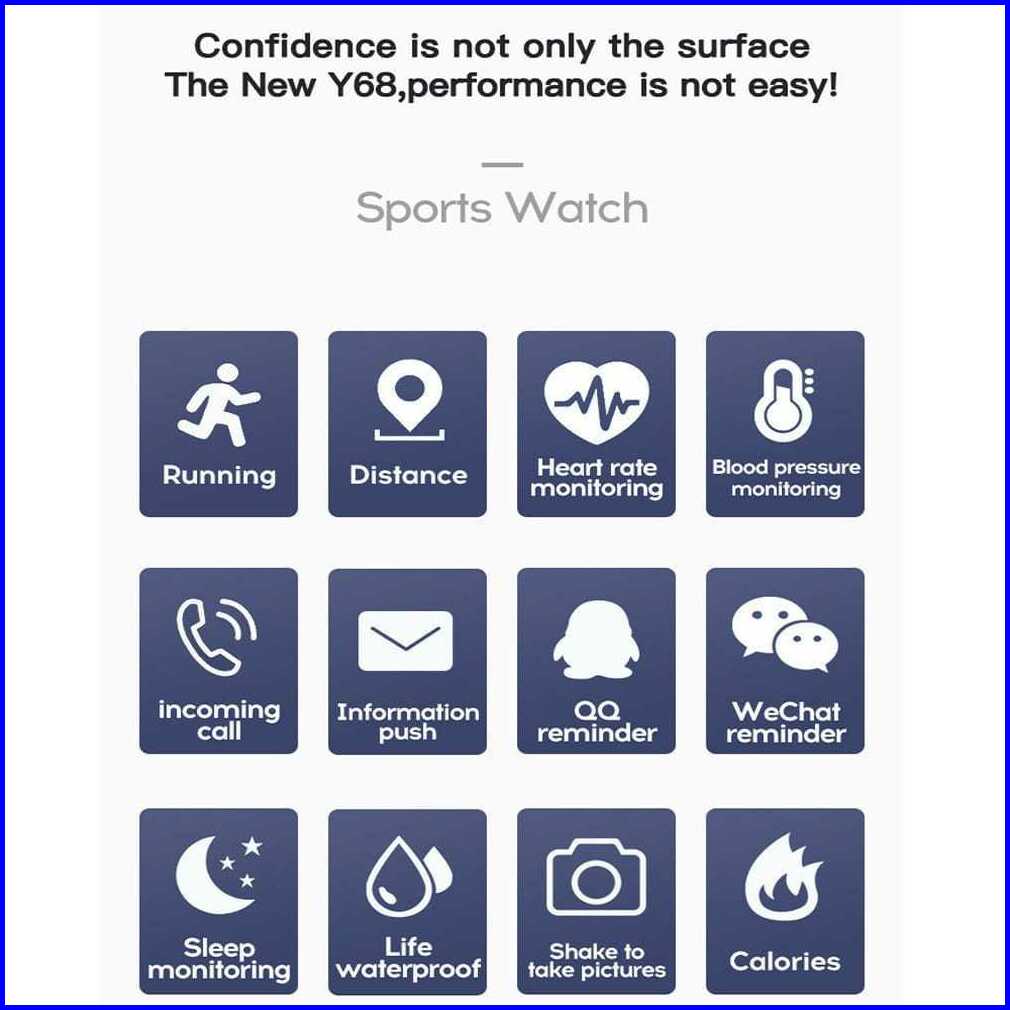 Smartwatch Y68 Sport Tahan Air Bluetooth Smart Watch Pelacak Kebugaran Gelang