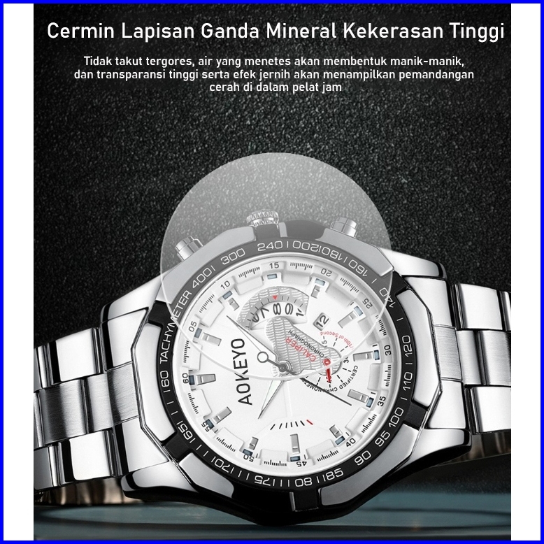 Aokeyo S001 Jam Tangan Pria Anti Air Original Luxury Stainless Steel Free Box Kartu