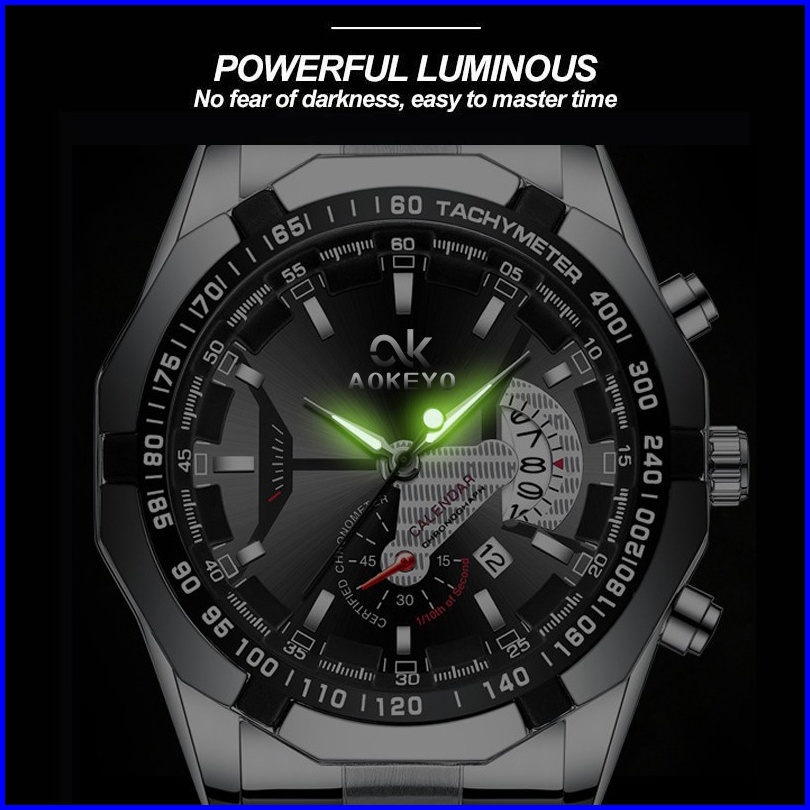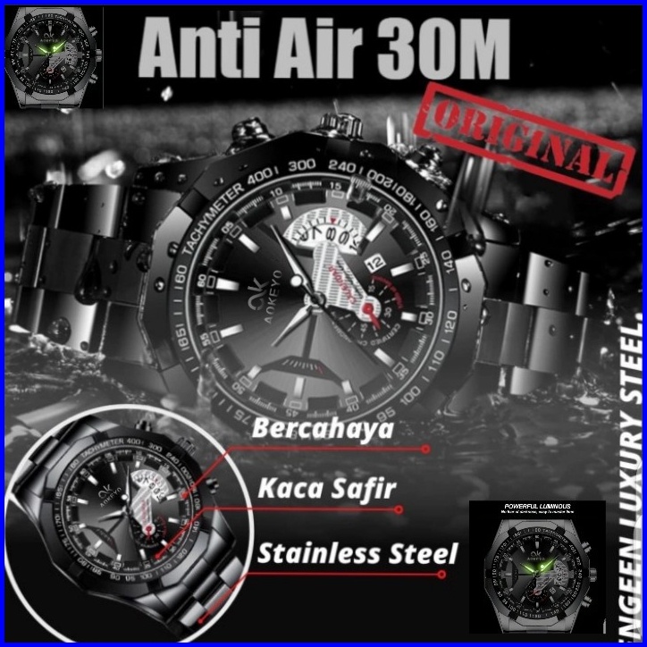 Aokeyo S001 Jam Tangan Pria Anti Air Original Luxury Stainless Steel Free Box And Kartu Garansi