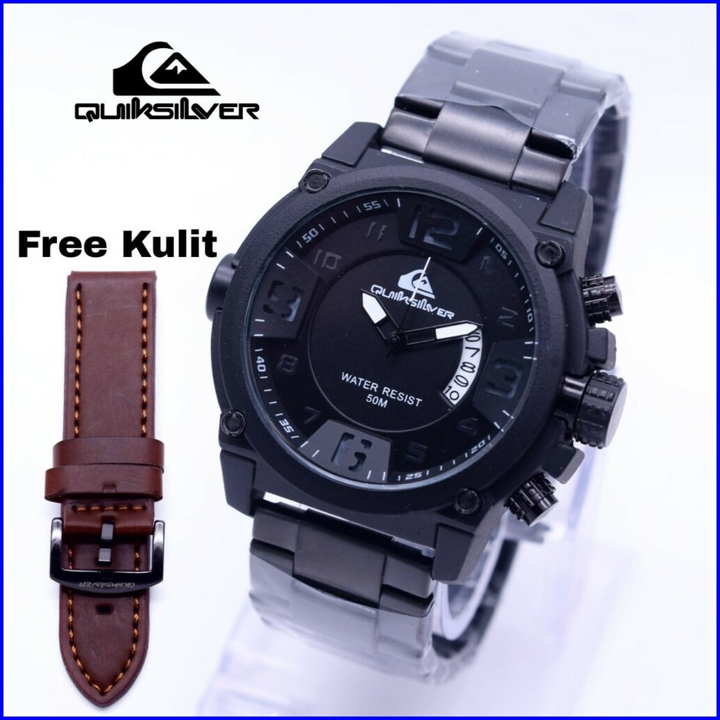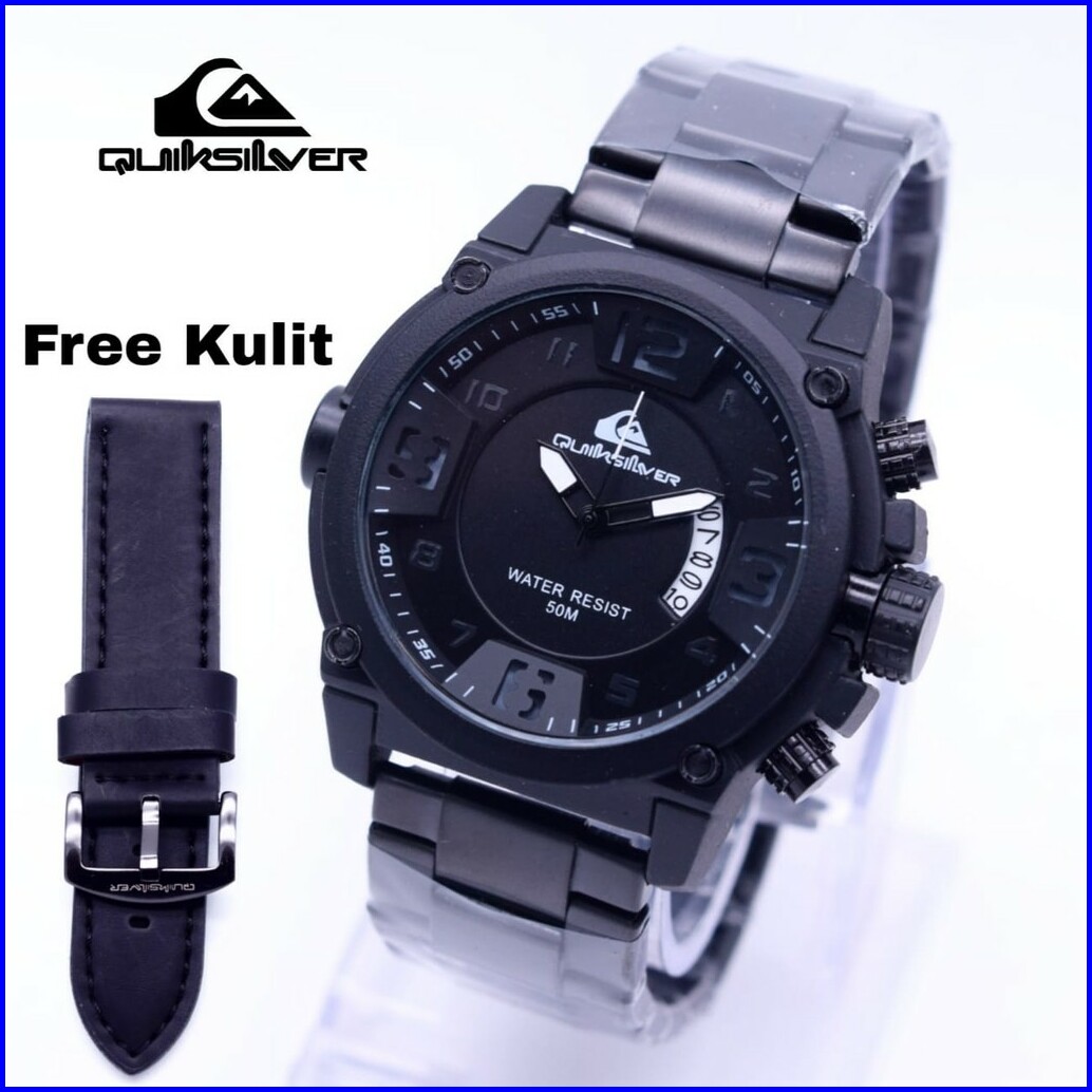 Limited Jam Tangan Pria Quiksilver Sabit Rantai Paket Free Kulit Jarum Putih