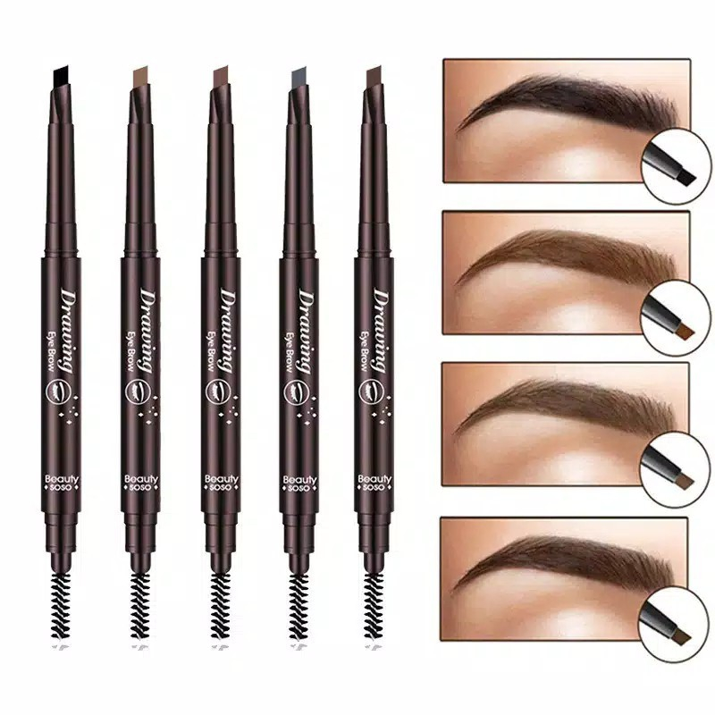 Ready Eyebrow Pensil 2 in 1 Waterproof Alis Drawing Automatic Pencil + Alis Sikat 2in1 Tahan Air Long Lasting Kepal