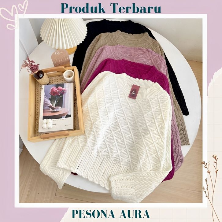 Baju Atasan Blouse Wanita Rajut Kamila Curly Premium Lengan Panjang Best Seller Termurah Pesona Aura