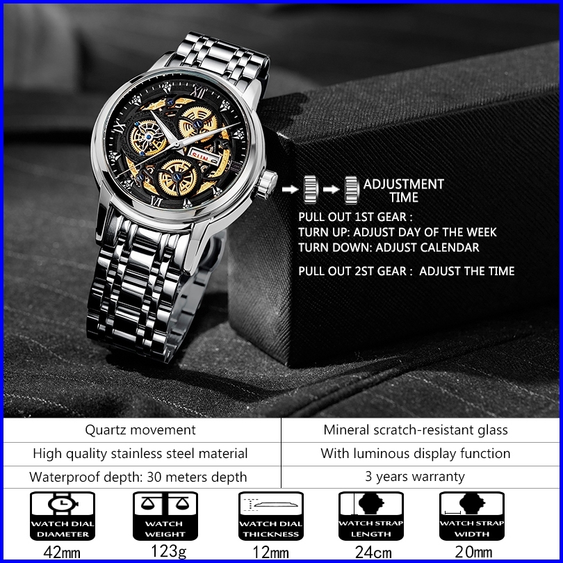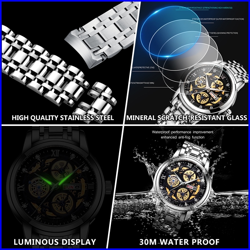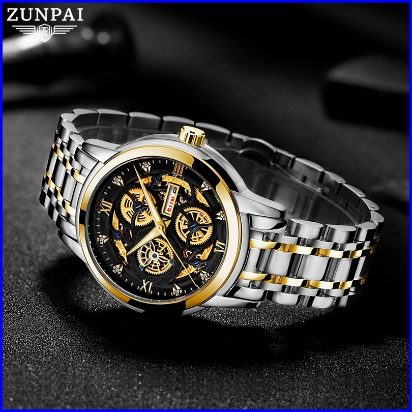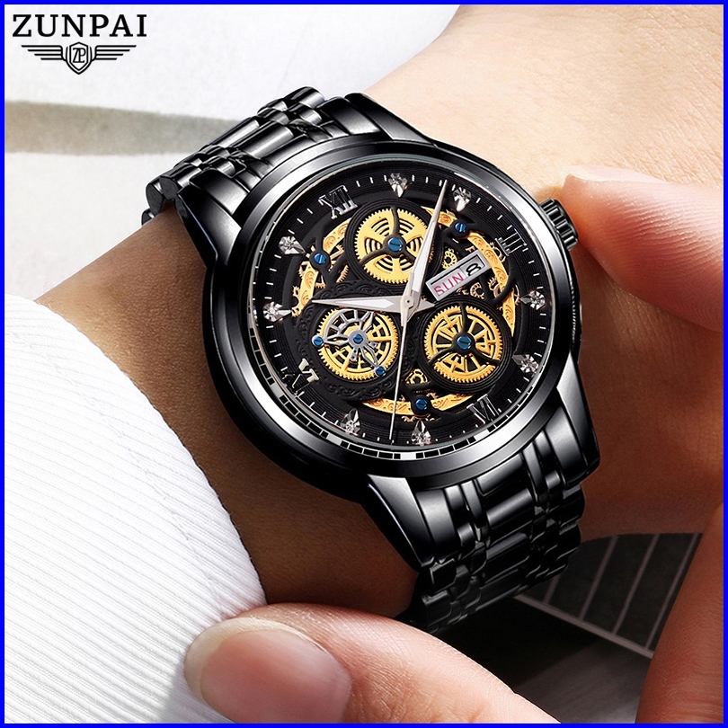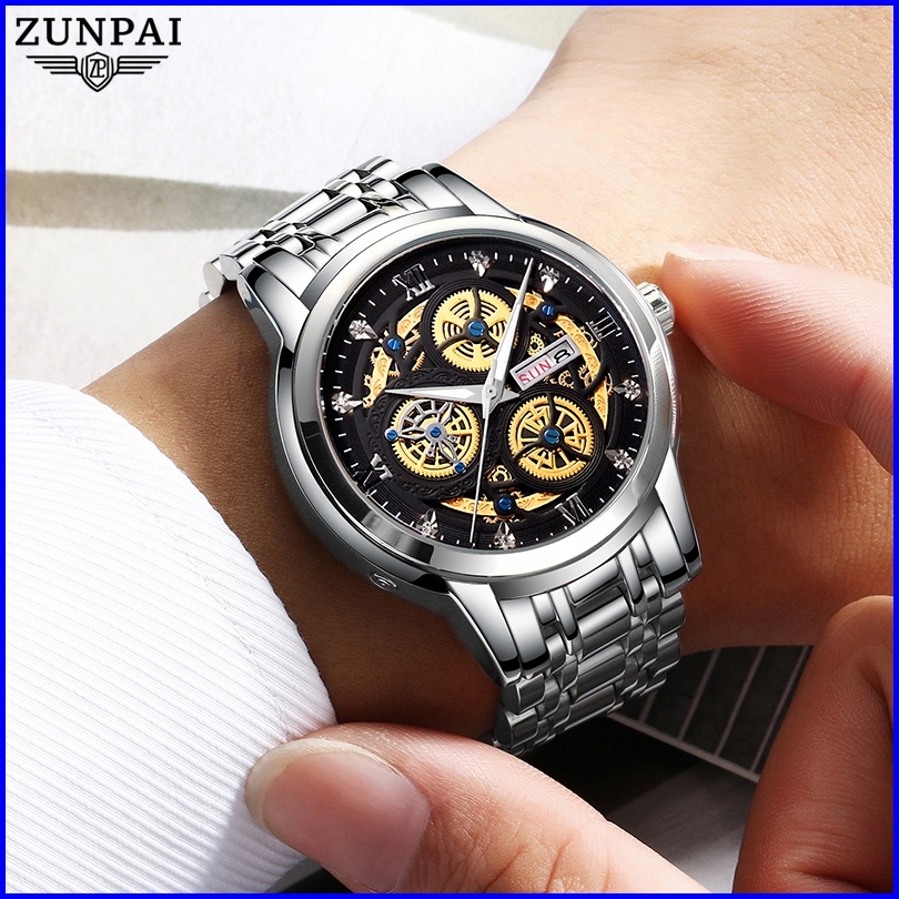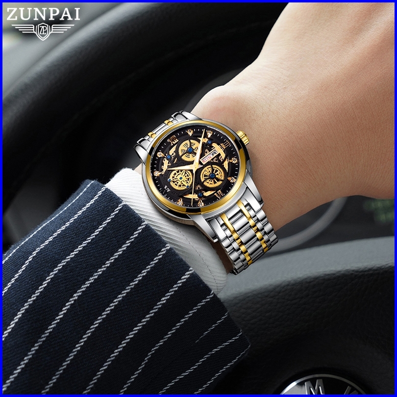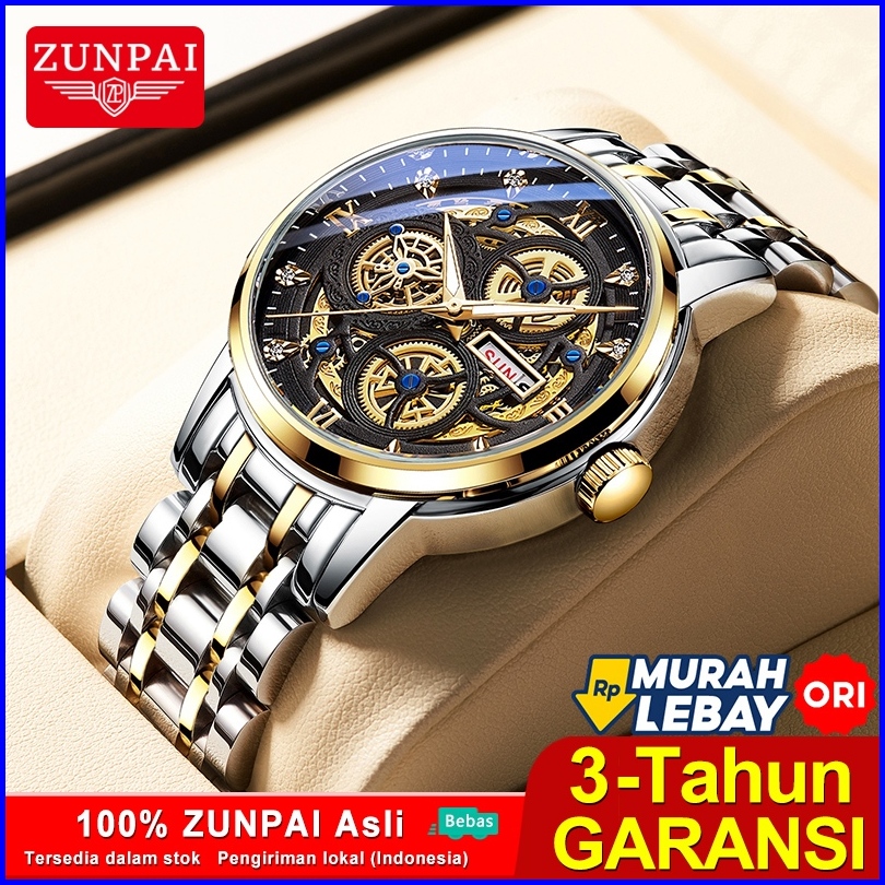 Zunpai Jam Tangan Pria Bisnis Asli Anti Air Jam Pria Terbaru Kalender Bercahaya Baja Tahan Karat Jam Pria Fashion Hadiah
