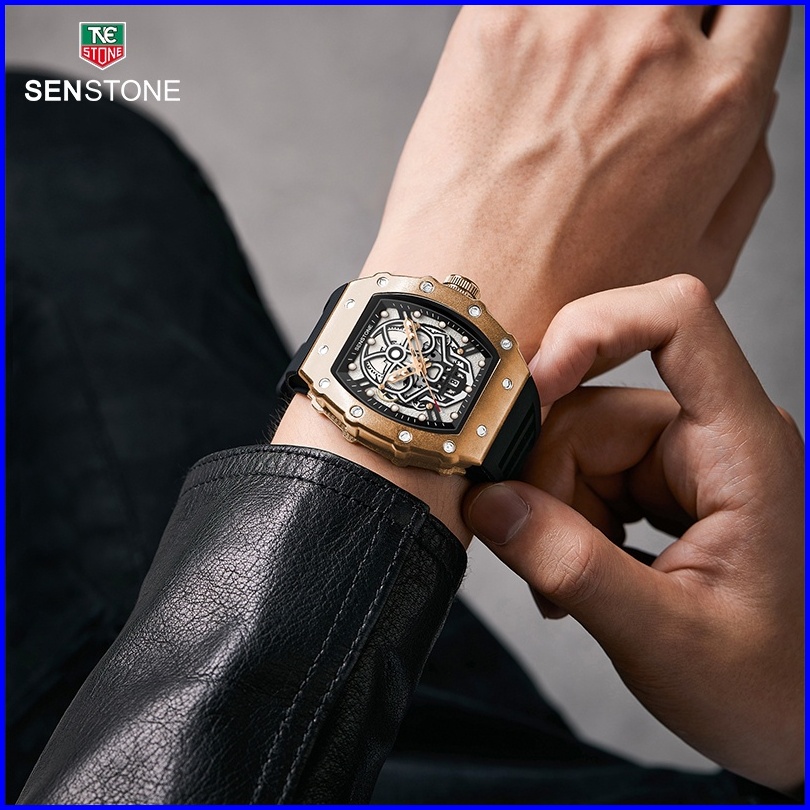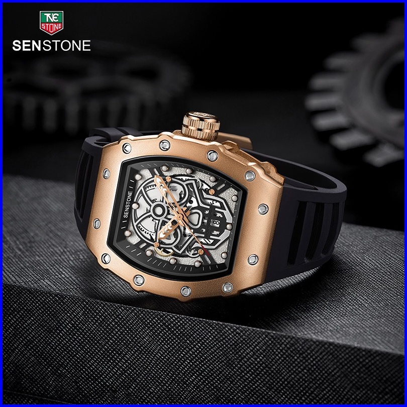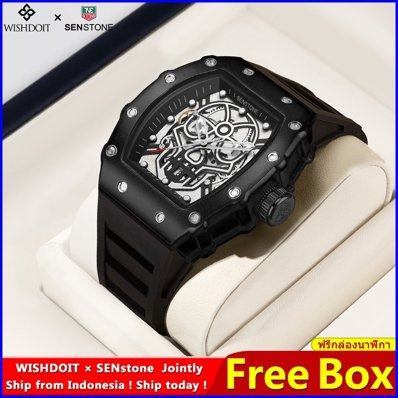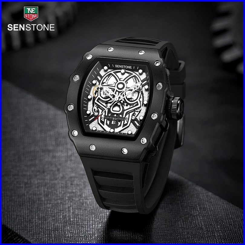 Senstone Asli Jam Tangan Pria Anti Air Jam Pria Anak Tengkorak Keren Fashion Analog Bercahaya Baterai Bentuk Tonneau Per
