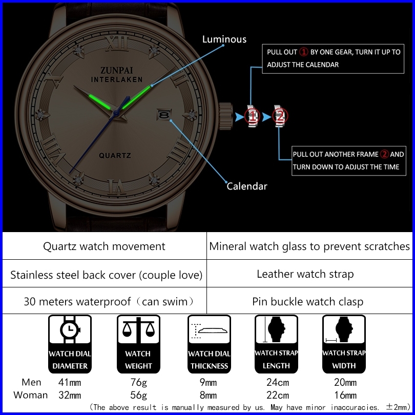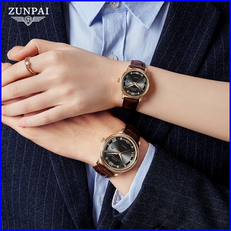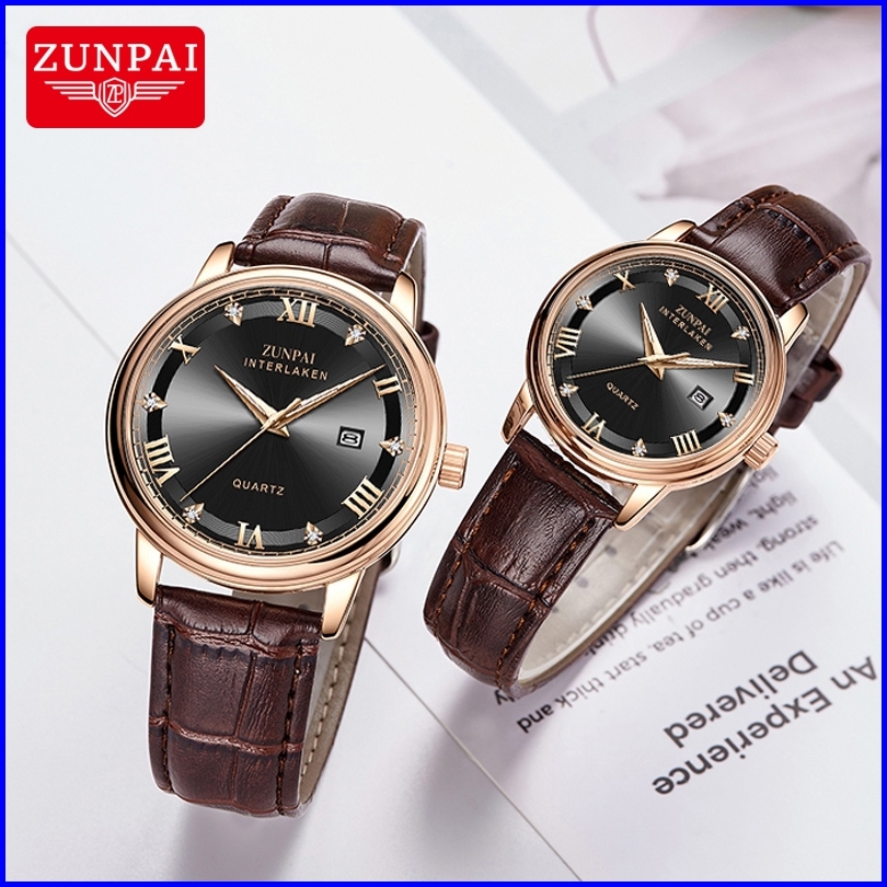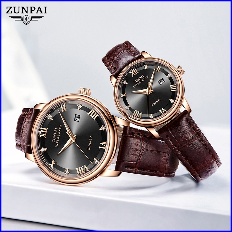 Zunpai Jam Tangan Pasangan Wanita Modern Asli Anti Air Merek Impor Elegan Mewah Wanita Pria Tali Kulit Asli Kuarsa Jam T