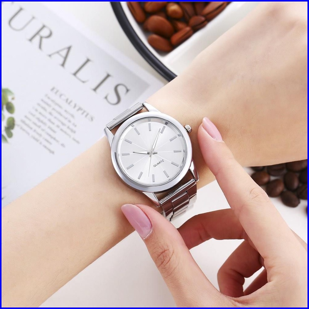 Wbs Jam Tangan Wanita Analog Quartz Casual Fashion Strap Rantai Stainless Steel Couple Pria Jf086