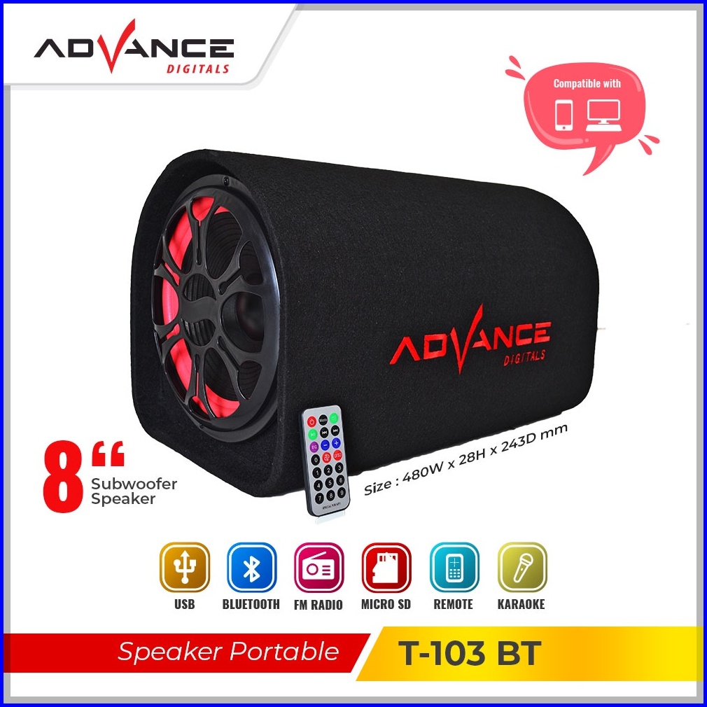 Advance 8 Subwoofer Bluetooth Speaker Super Bass Speaker Karaoke T103 Bt Garansi Resmi Advance 1 Tahun