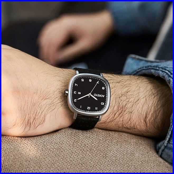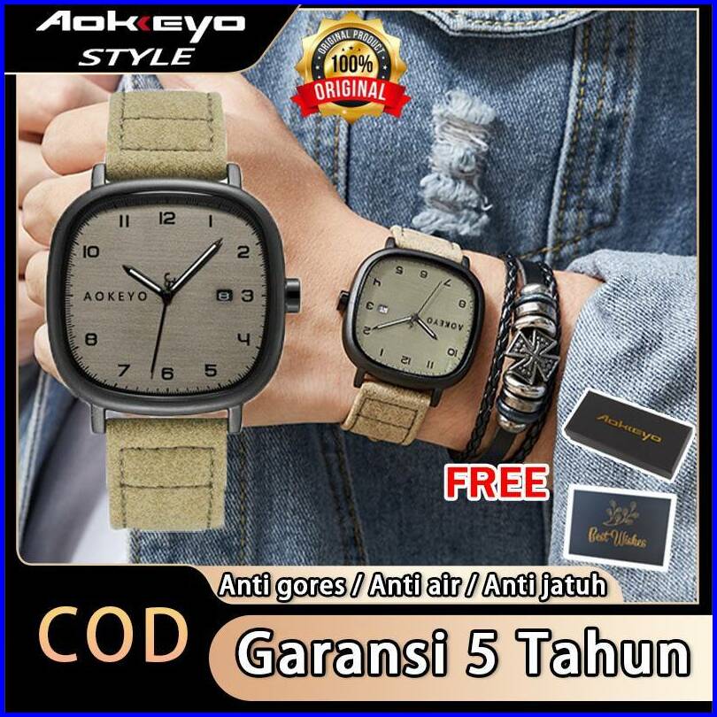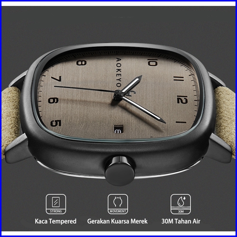 Aokeyo F043 Jam Tangan Pria Kulit Anti Air Original Terbaru Casual Tahan Air Square Leather Jam Tangan Cowok Free Box Ka