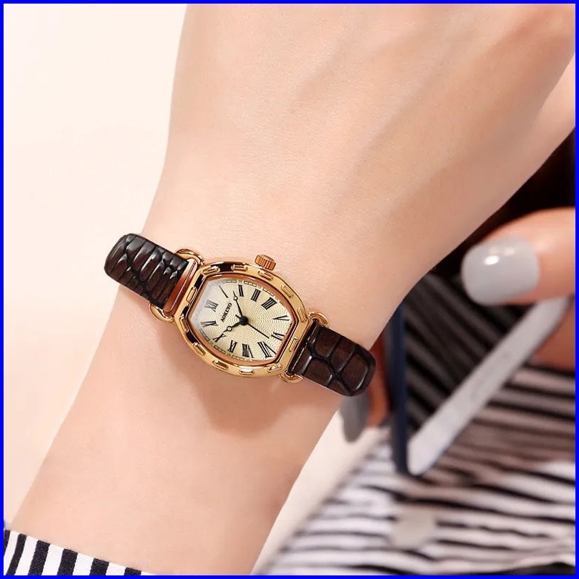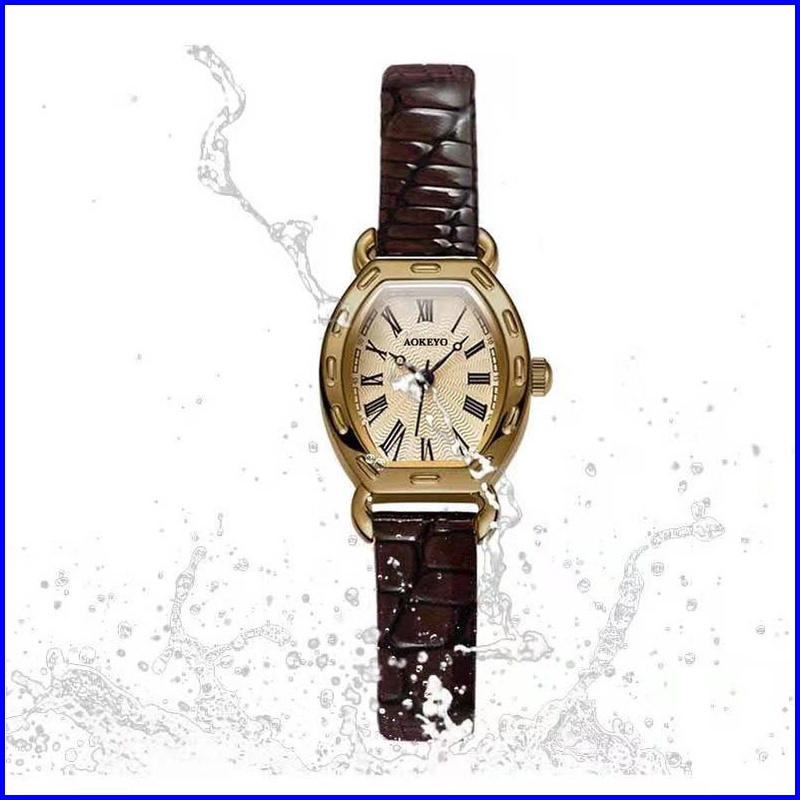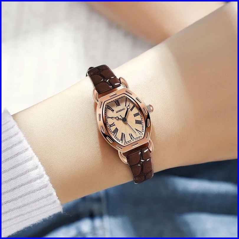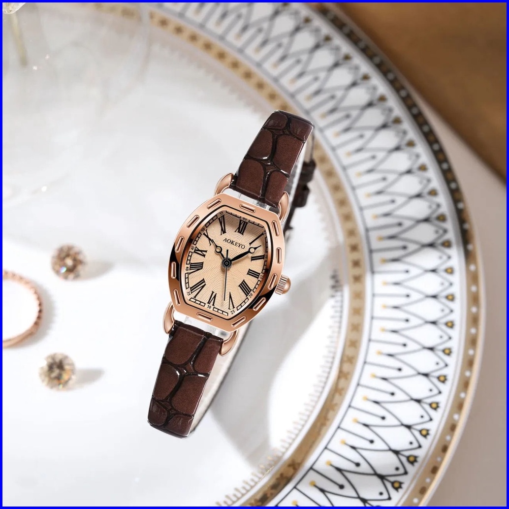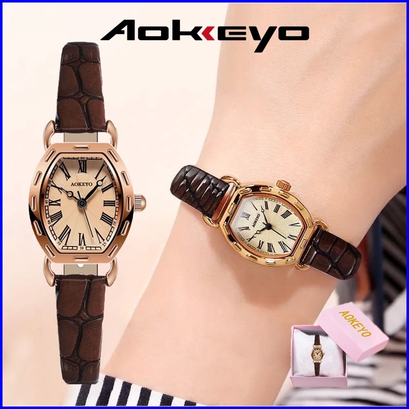 Aokeyo Jam Tangan Wanita S053 Klasik Mode Display Kuarsa Santai Jam Tali Kulit Tahan Air Jam Tangan Cewek Free Box Kartu