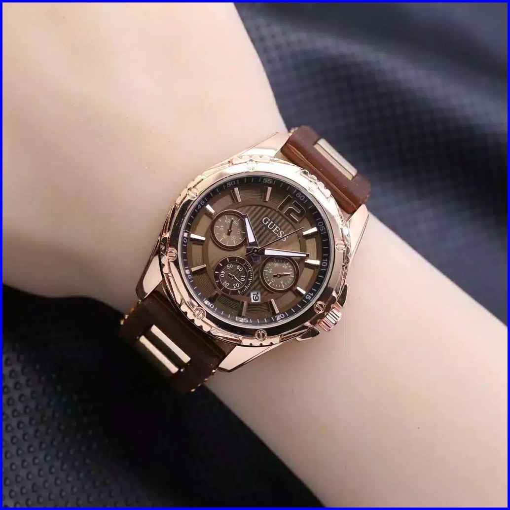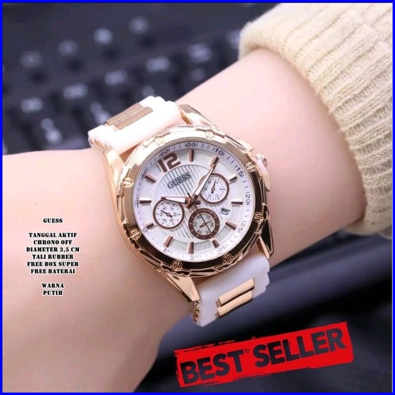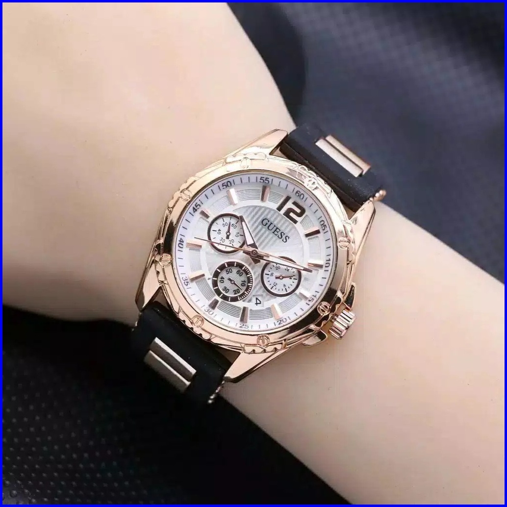 Jam Tangan Wanita Guess Rubber Chrono Hiasan Tanggal Aktif Bl3202