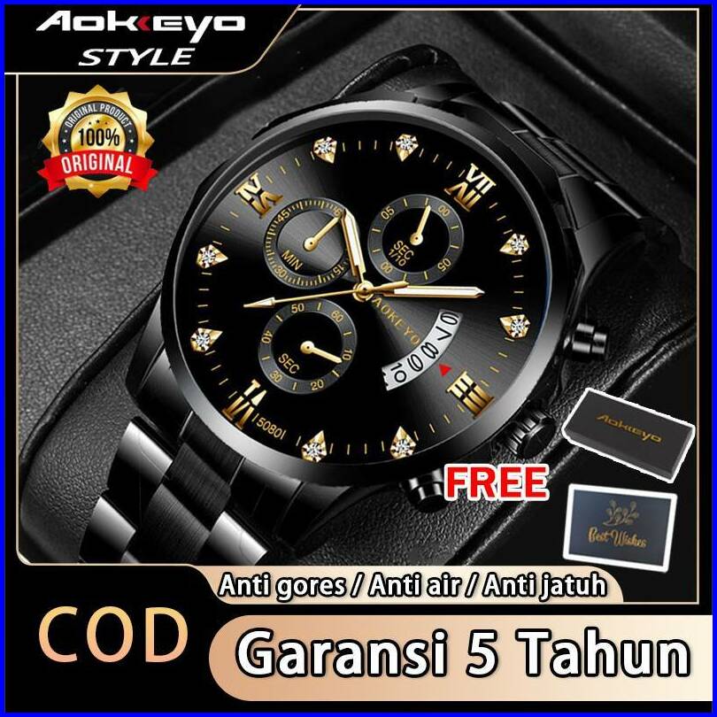 Best Selleraokeyo 5080 Jam Tangan Pria Anti Air Original Luxury Stainless Steelfree Box Kartu Garansi