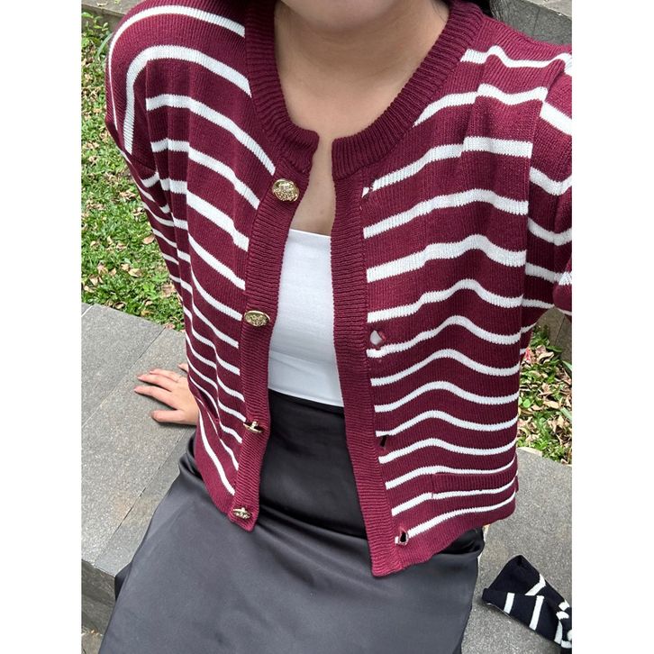 Cheesy Cardy Stripe Kinara Kardigan Jisso Cardigan Kancing Knit Wanita