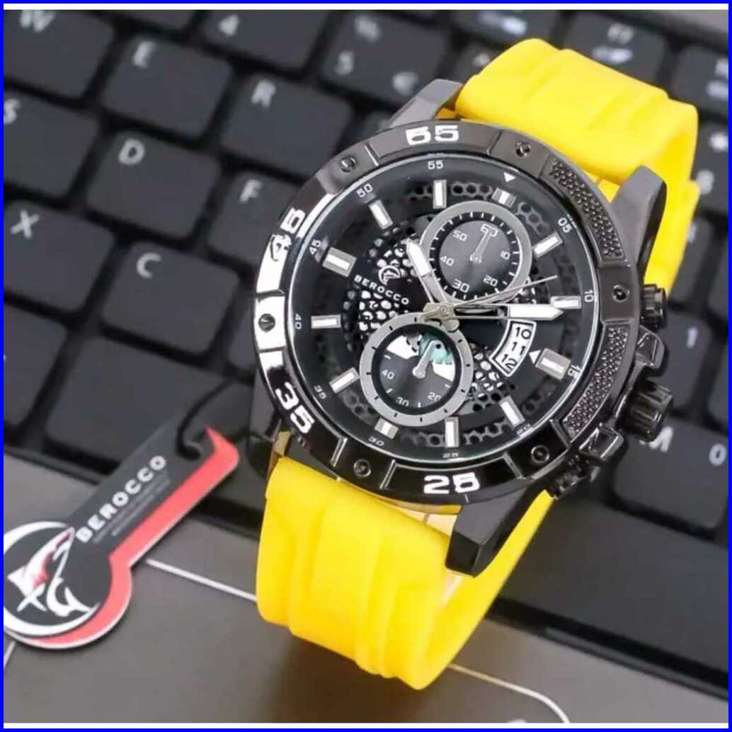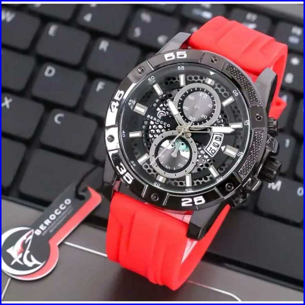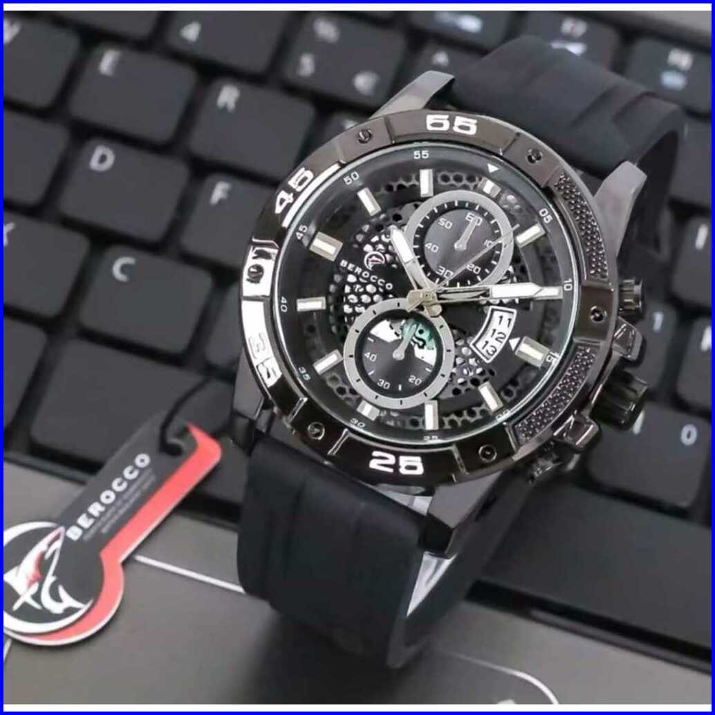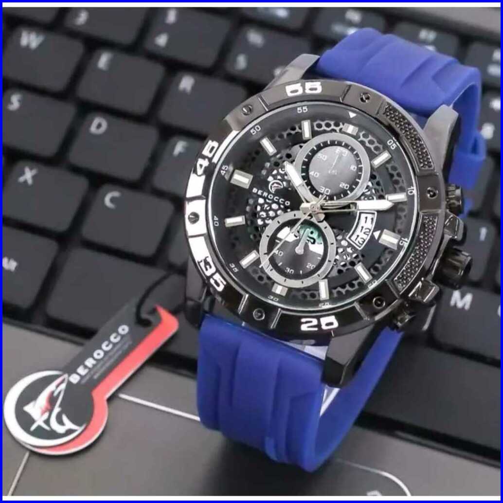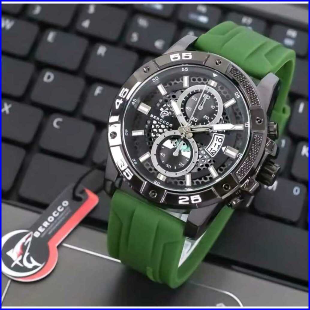 Jam Tangan Pria Berocco 001 Strap Rubber Tanggal Aktif Tahan Air Fashion