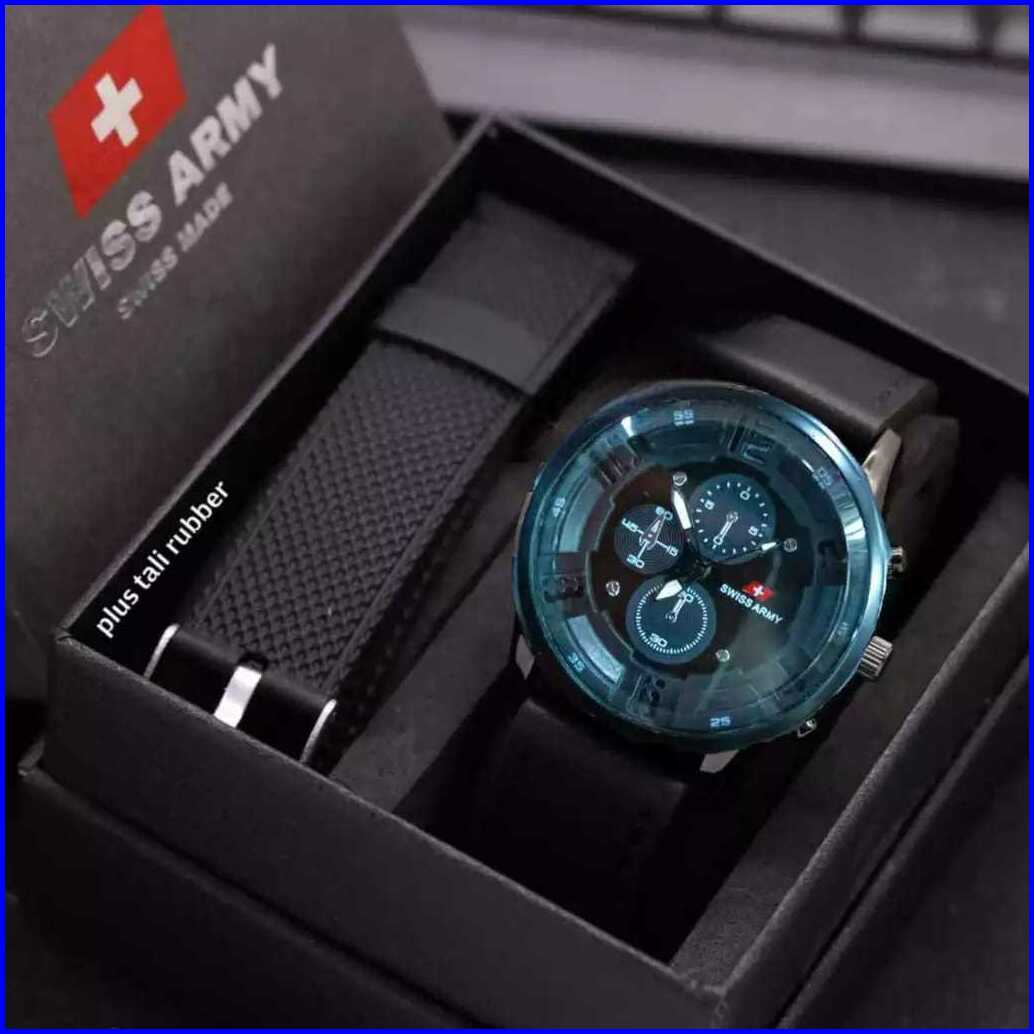 Jam Tangan Pria Swiss Tali Kulit Chrono Varian Free 1 Tali Karet Free Box Paket Full Sett - Analog Watches