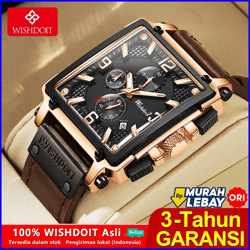 Wishdoit Jam Tangan Pria Anti Air Kulit Berkualitas Tinggi Kalender Bercahaya Multifungsi Jam Fashion Persegi Keren Olah