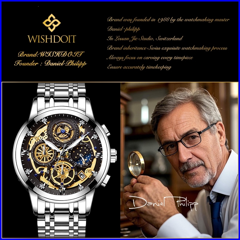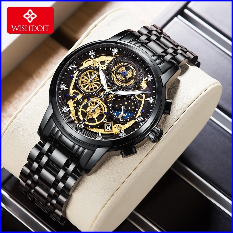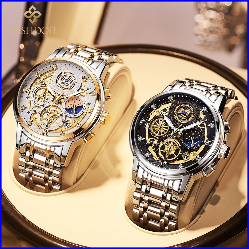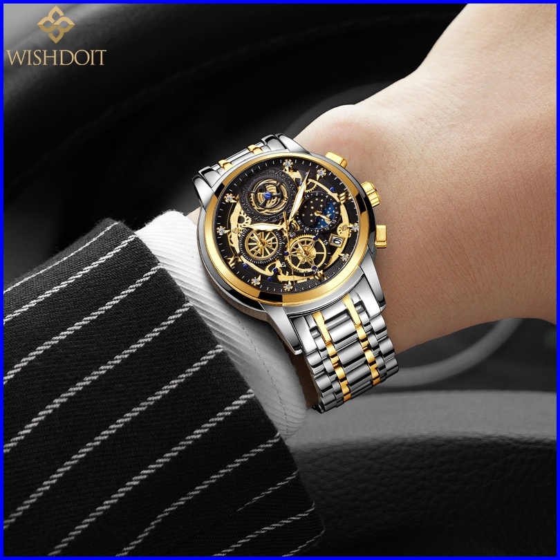 Wishdiot Jam Tangan Pria Anti Air Asli Terbaru Mewah Bisnis Stainless Steel Chronograph Digital Analog Fashion Jam Pria