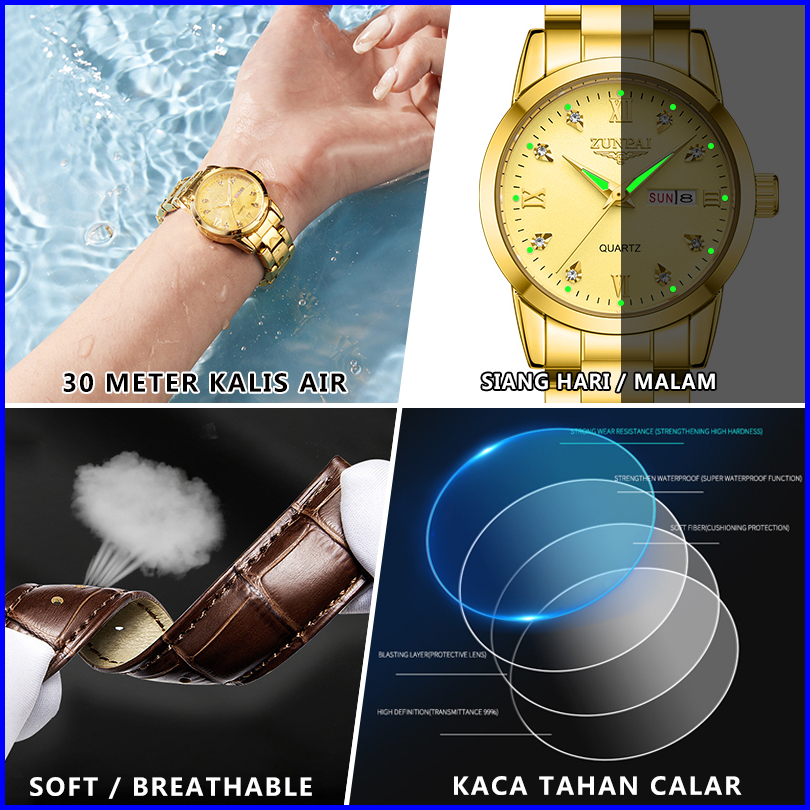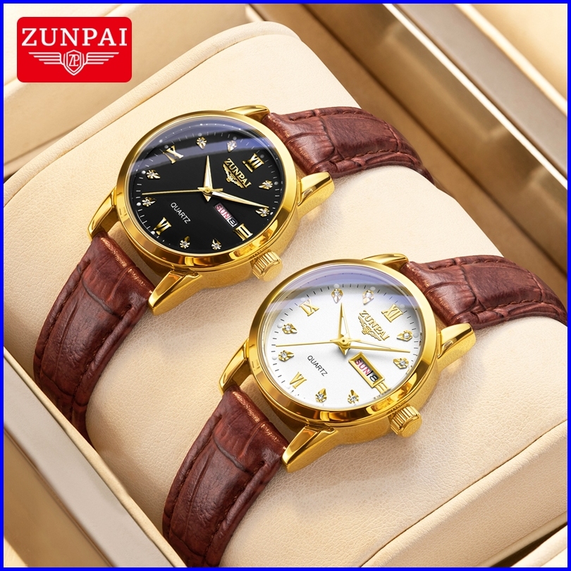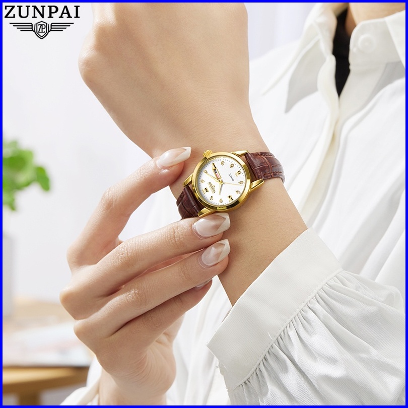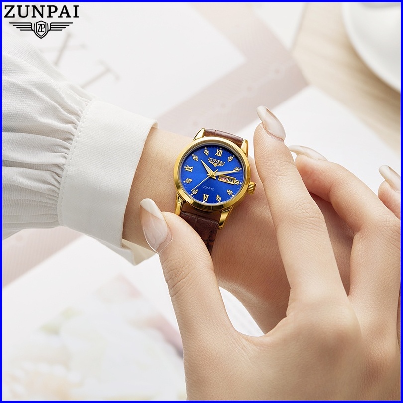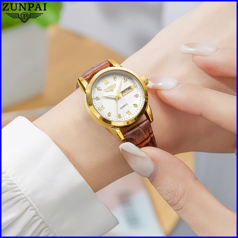Zunpai Jam Tangan Wanita Kekinian Original Anti Air Impor Bermerek Cewek Elegan Mewah Tali Kulit Kuarsa Arloji Terbaru