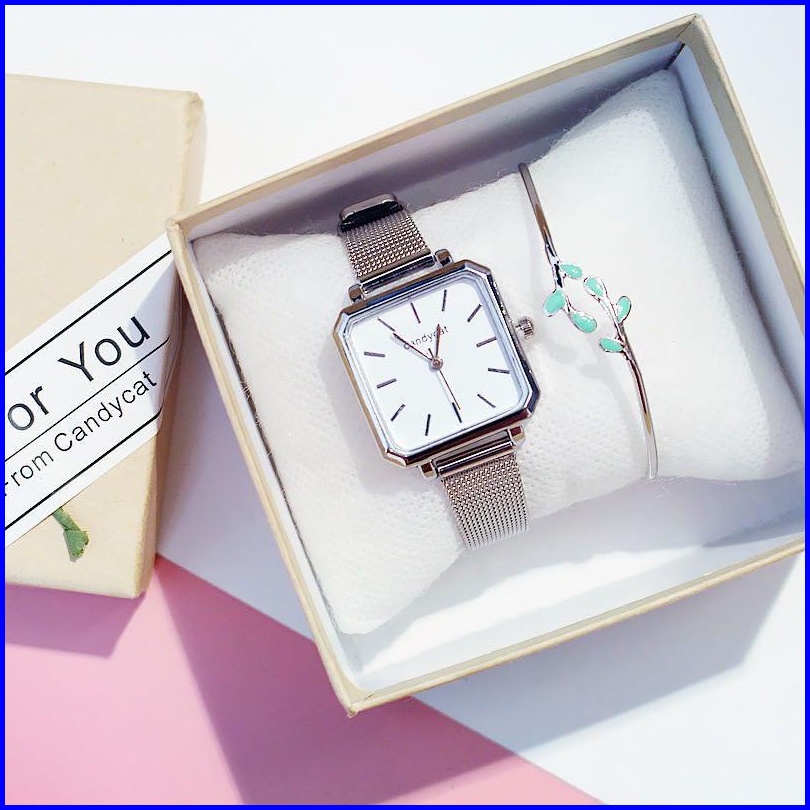 Wbs Jam Tangan Wanita Analog Casual Candy Cat Segi Rantai Pasir Murah Grosir Fashion Couple Pria Jf085