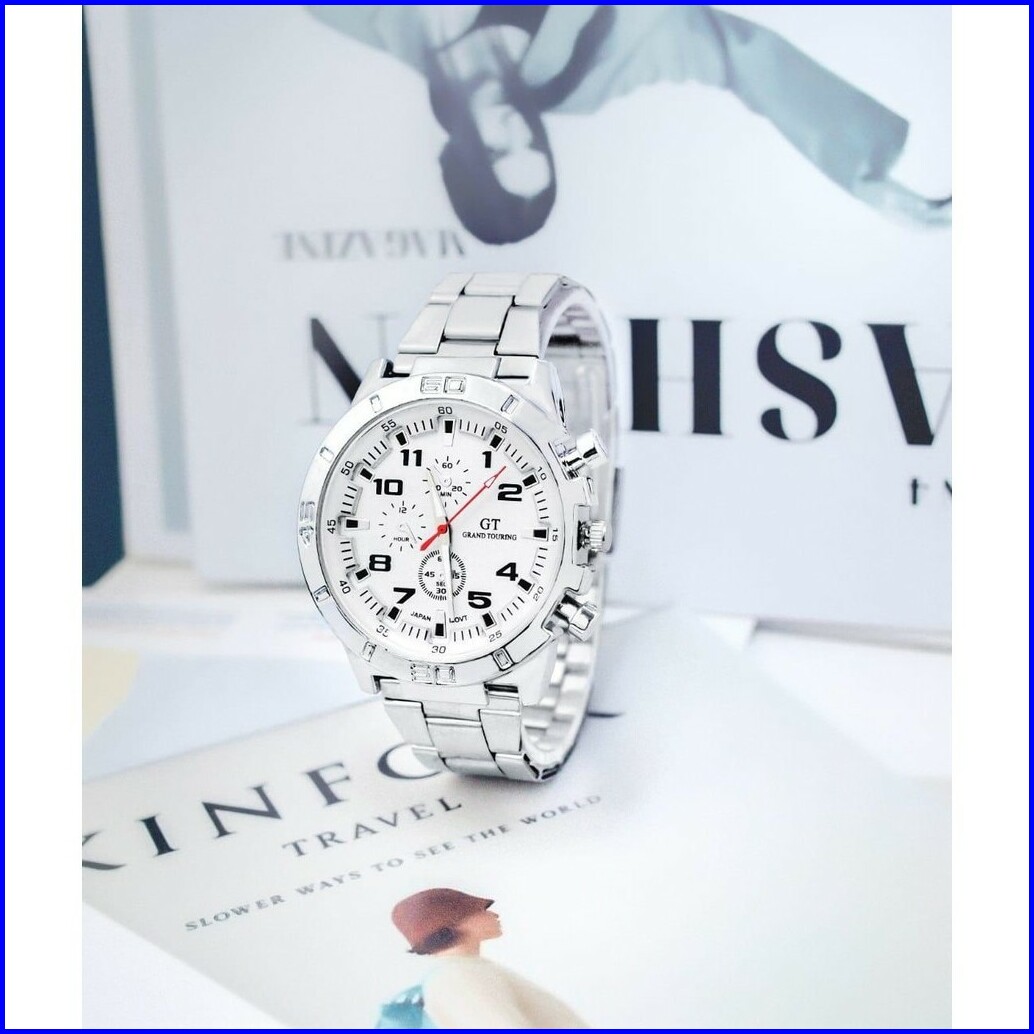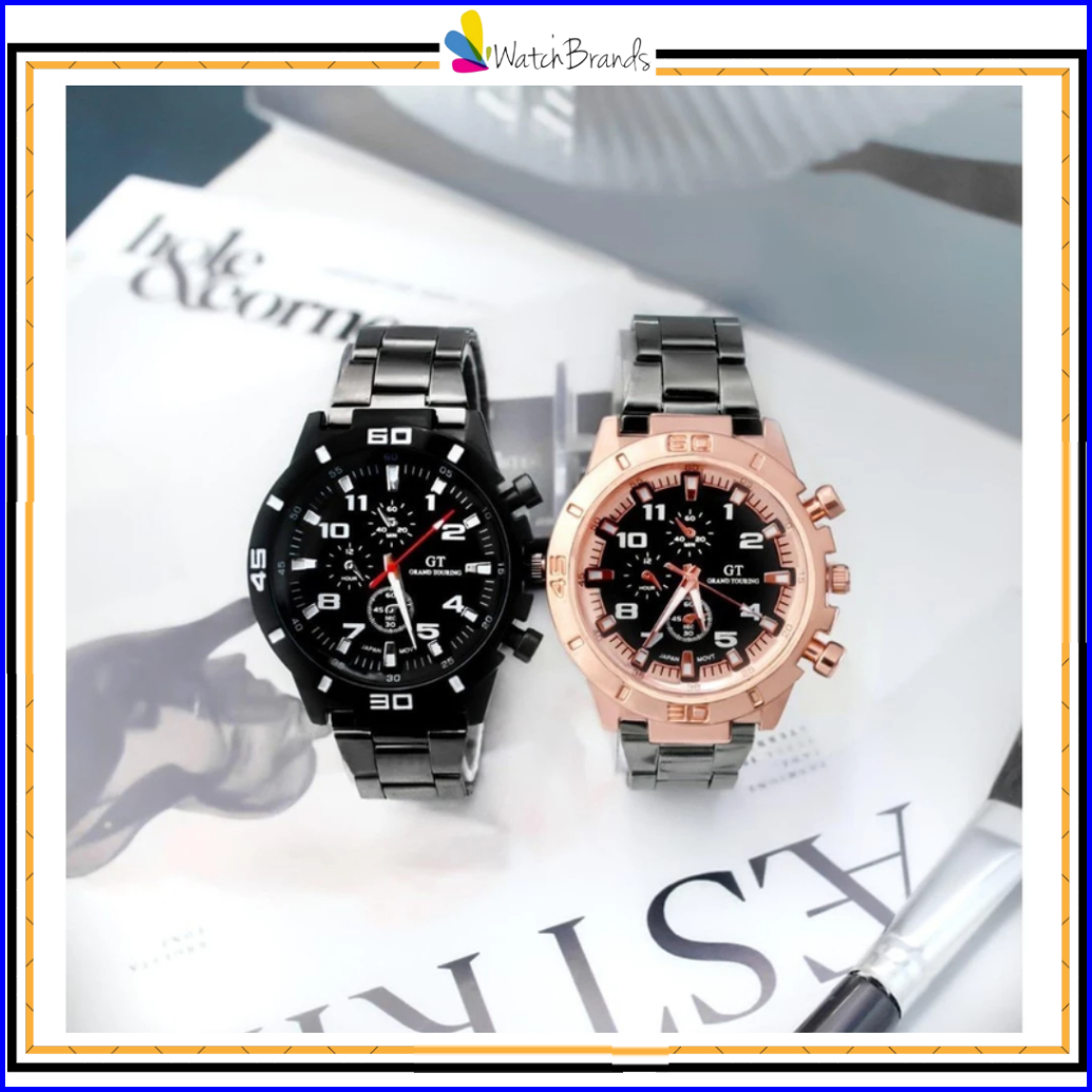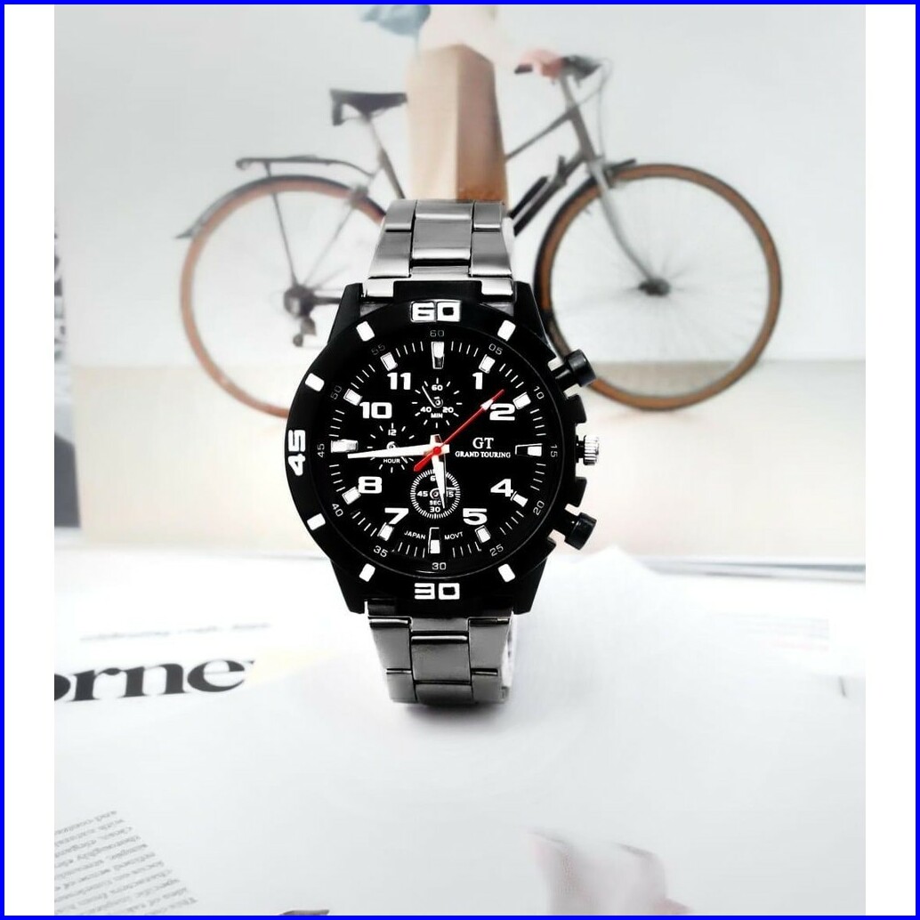 Wbs Jam Tangan Pria Gt Sport Chrono Grand Touring Rantai Stainlee Steel Korea Fashion Quartz Silikon Rubber Analog Watch