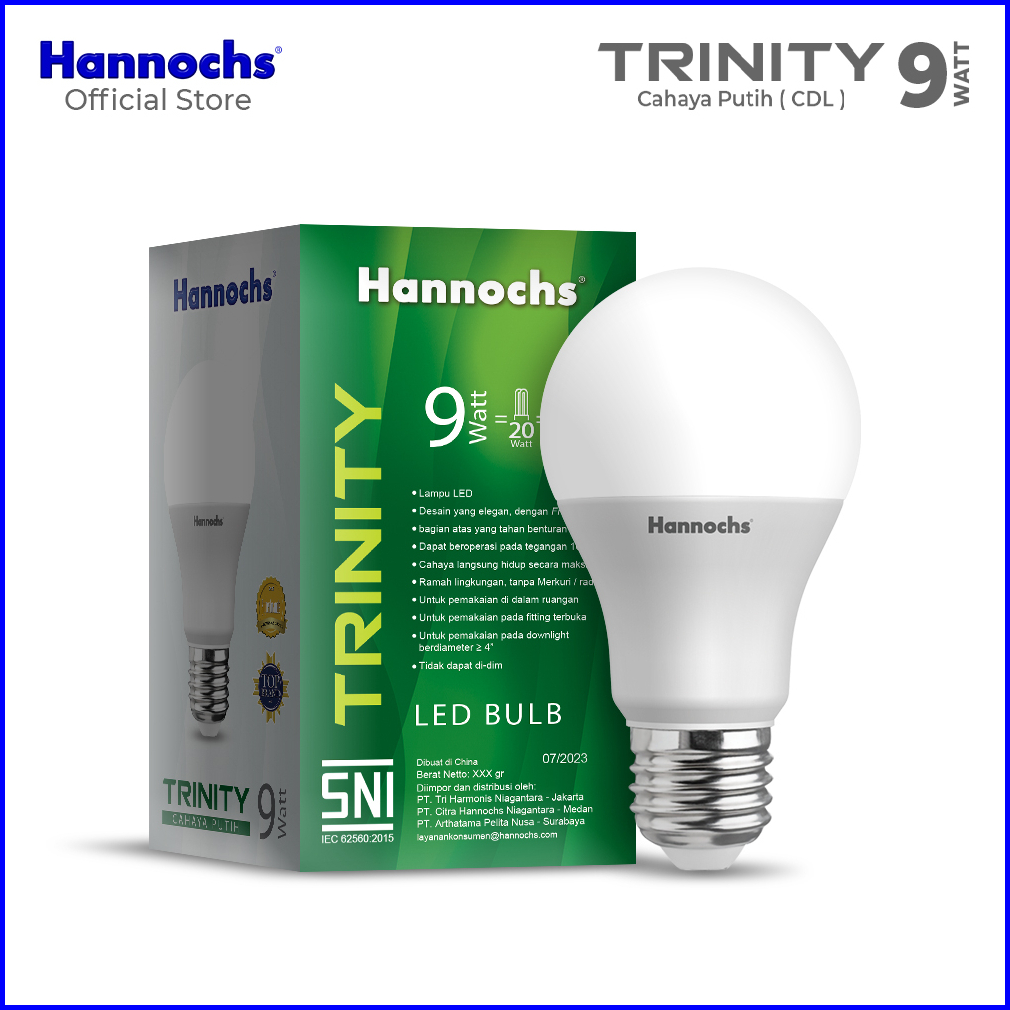 Hannochs Lampu Bohlam Led Trinity 9w Cahaya Putih