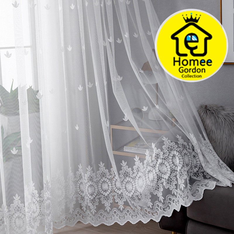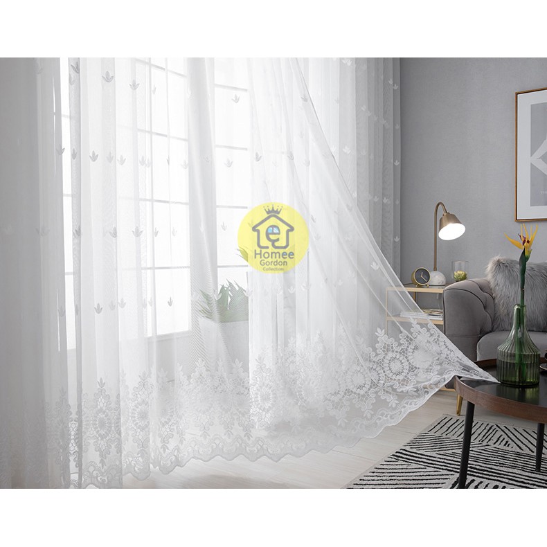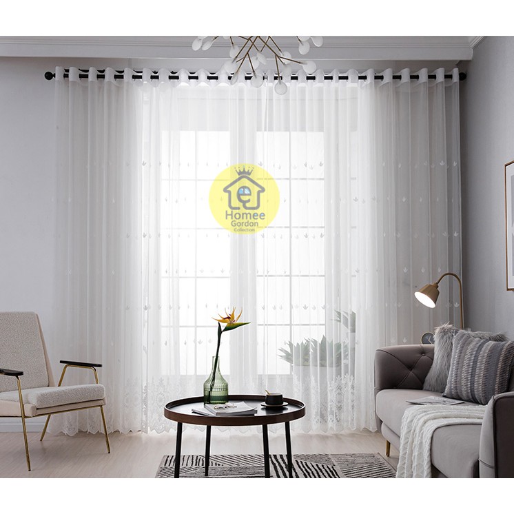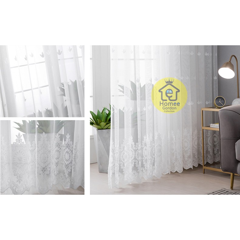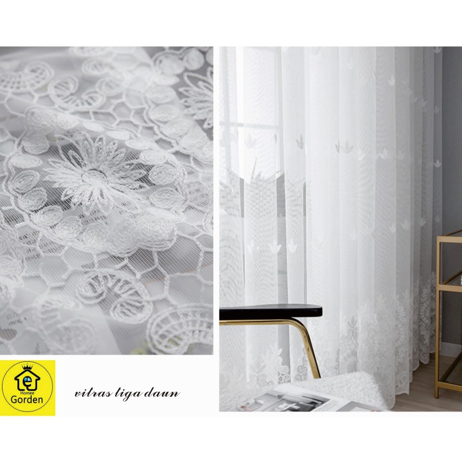 Gorden Jendela Rumah Murah – Vitrase Renda Daun Tiga Putih Model Jaring Lembut