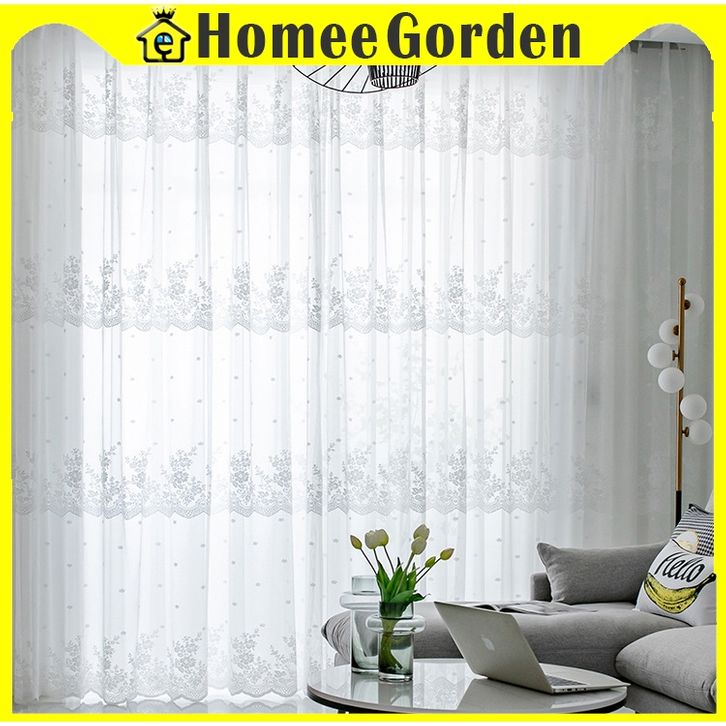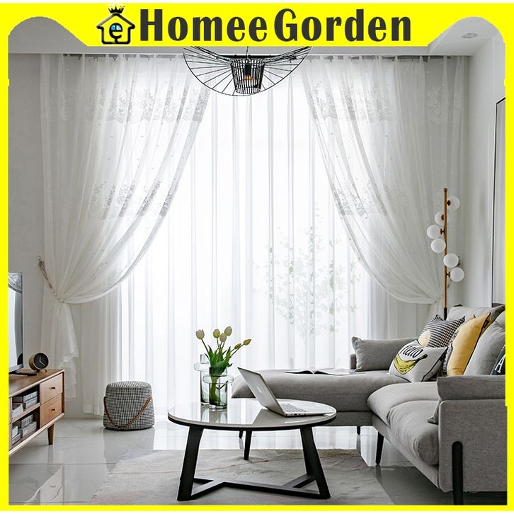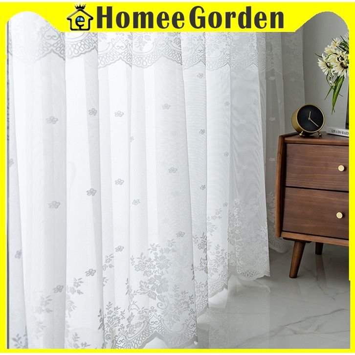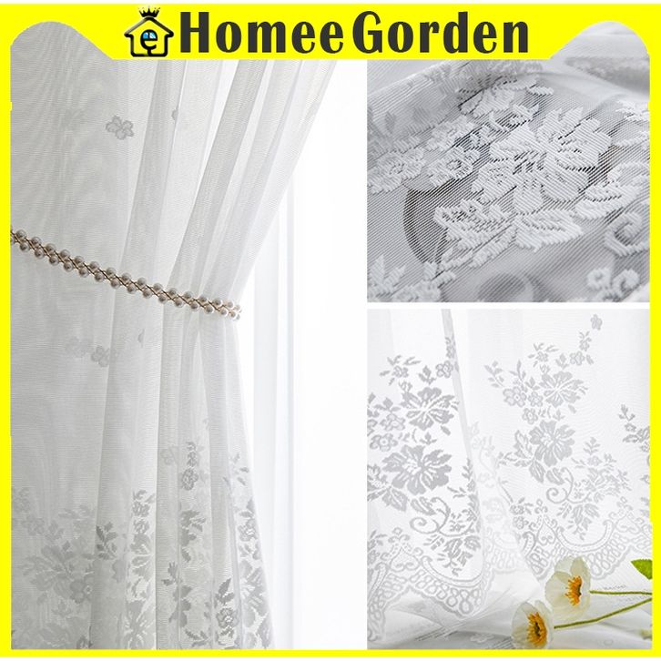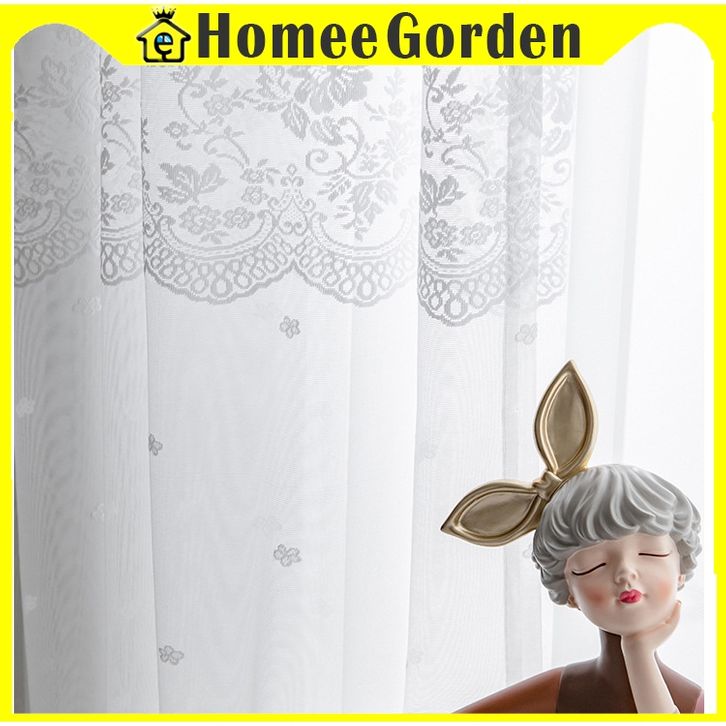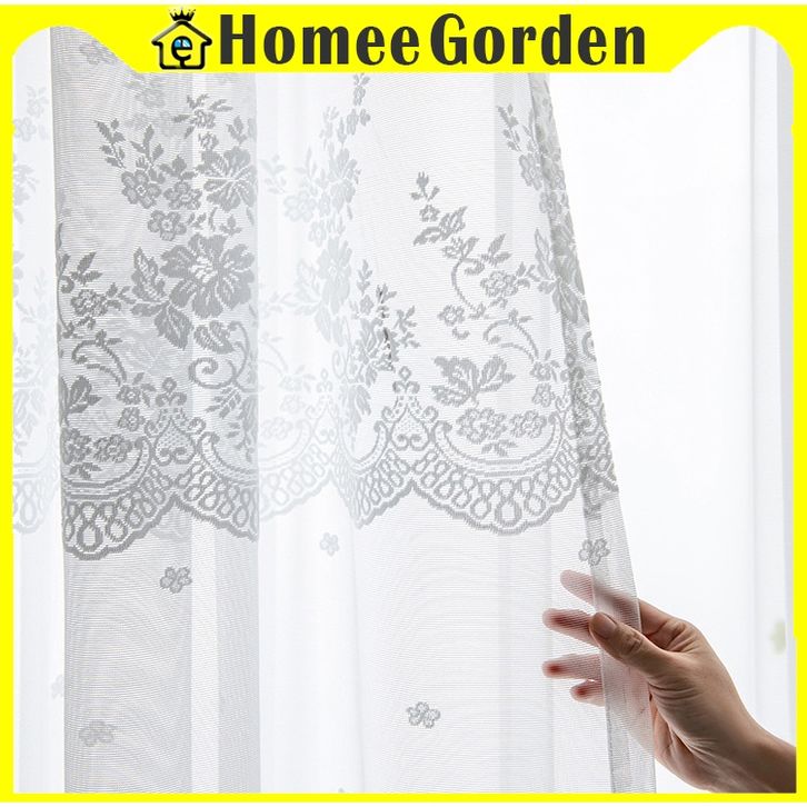 Gorden Jendela Rumah Murah – Vitrase Renda Daun Tiga Putih Model Jaring Lembut