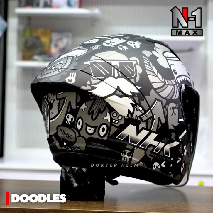 HELM NHK N1 MAX DOODLES VISOR RHD LENS LIGHT SMOKE HALF FACE ORIGINAL SNI