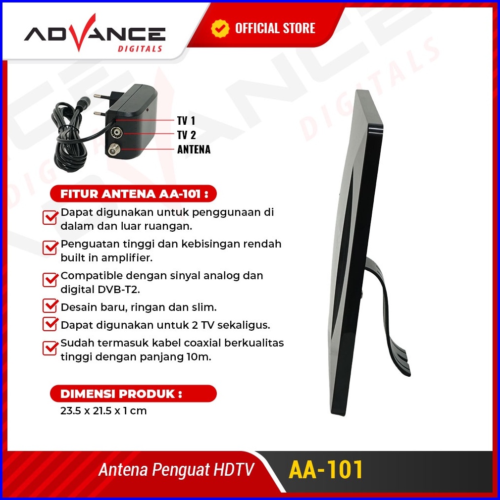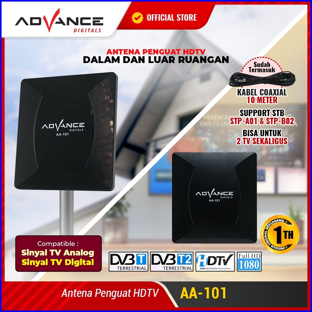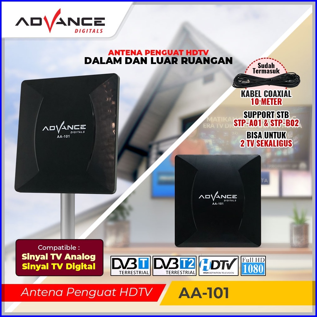 Advance Aa-101 Antena Indoor Outdoor Digital Analog Dalam Dvb-t2 Dan Luar Ruangan Cocok Untuk Stb Dan Tv Tahan Hujan Dan