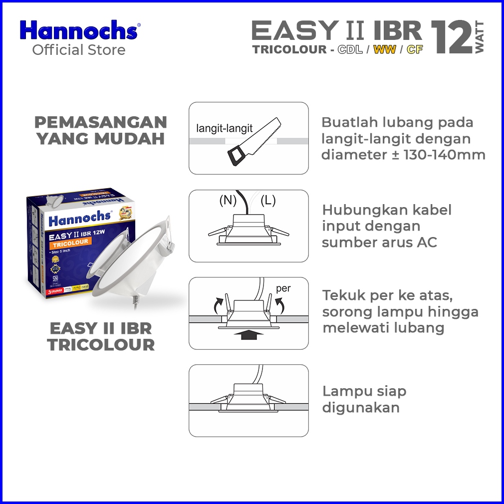 Hannochs Lampu Downlight Led Easy Ii 12w Ibr Tricolour Inbow