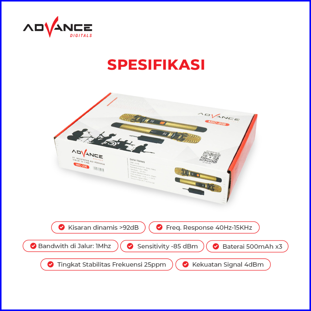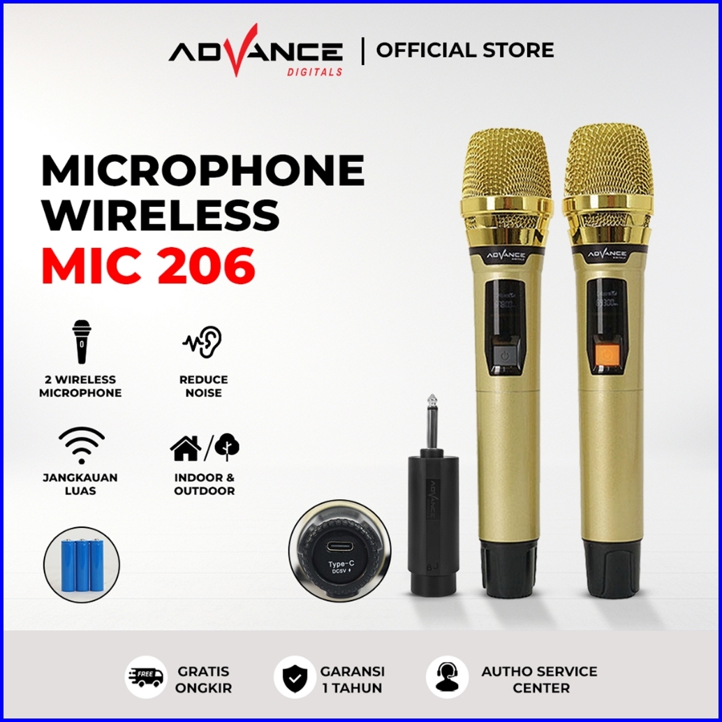Advance Mic-206 Duet Microphone Wireless Uhf Garansi Resmi 1 Tahun - Bisa Di Charger