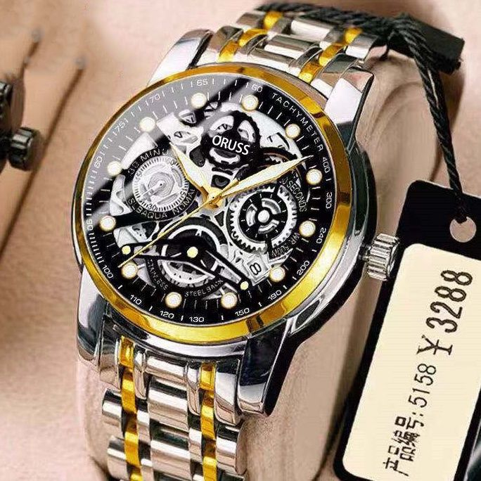 Jam Tangan Pria Anti Air Bercahaya Bisnis Olahraga Original ORUSS Hollow Luxury Stainless Steel Watch Berkualitas