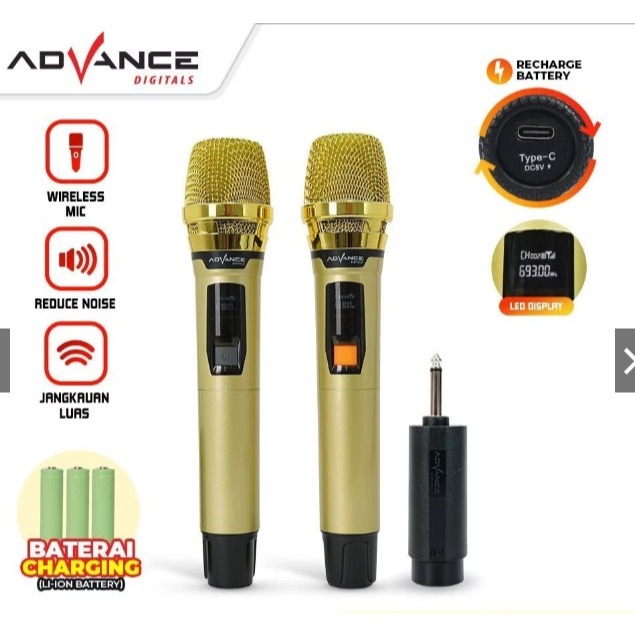 ADVANCE Microphone MIC-207 / MIC-206 / MIC-209 Microphone Karaoke satu paket 2 MIC