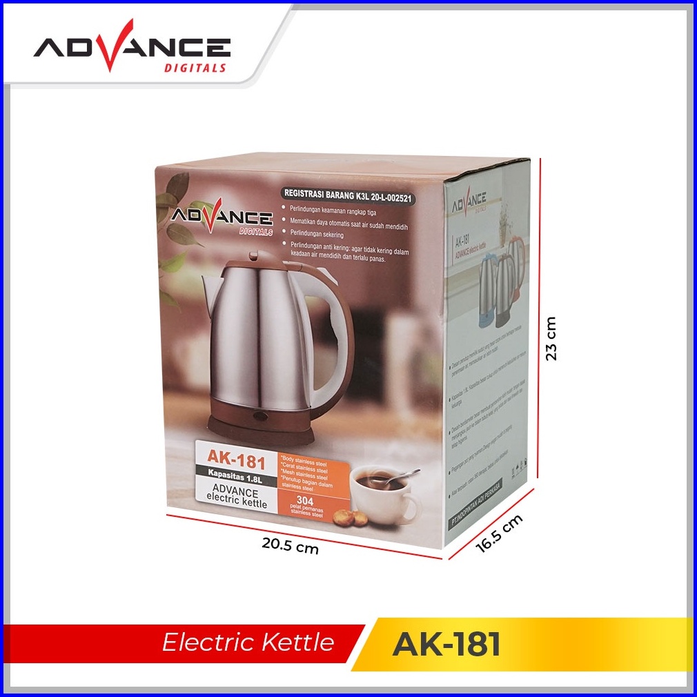 Advance Ak-181 Kettle Listrik Teko Listrik Kapasitas 1 8 Liter Hemat Listrik