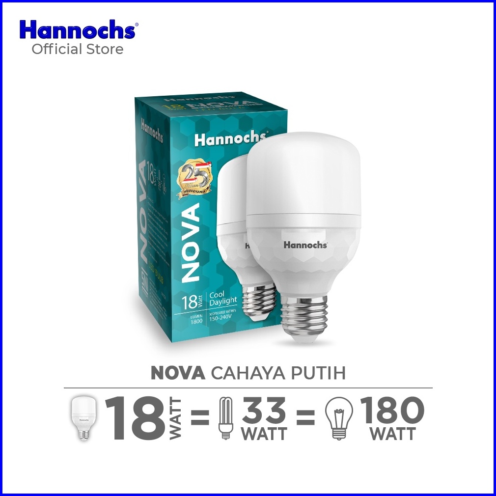 Hannochs Lampu Bohlam Led Nova 18w Cahaya Putih Paket Isi 3pcs