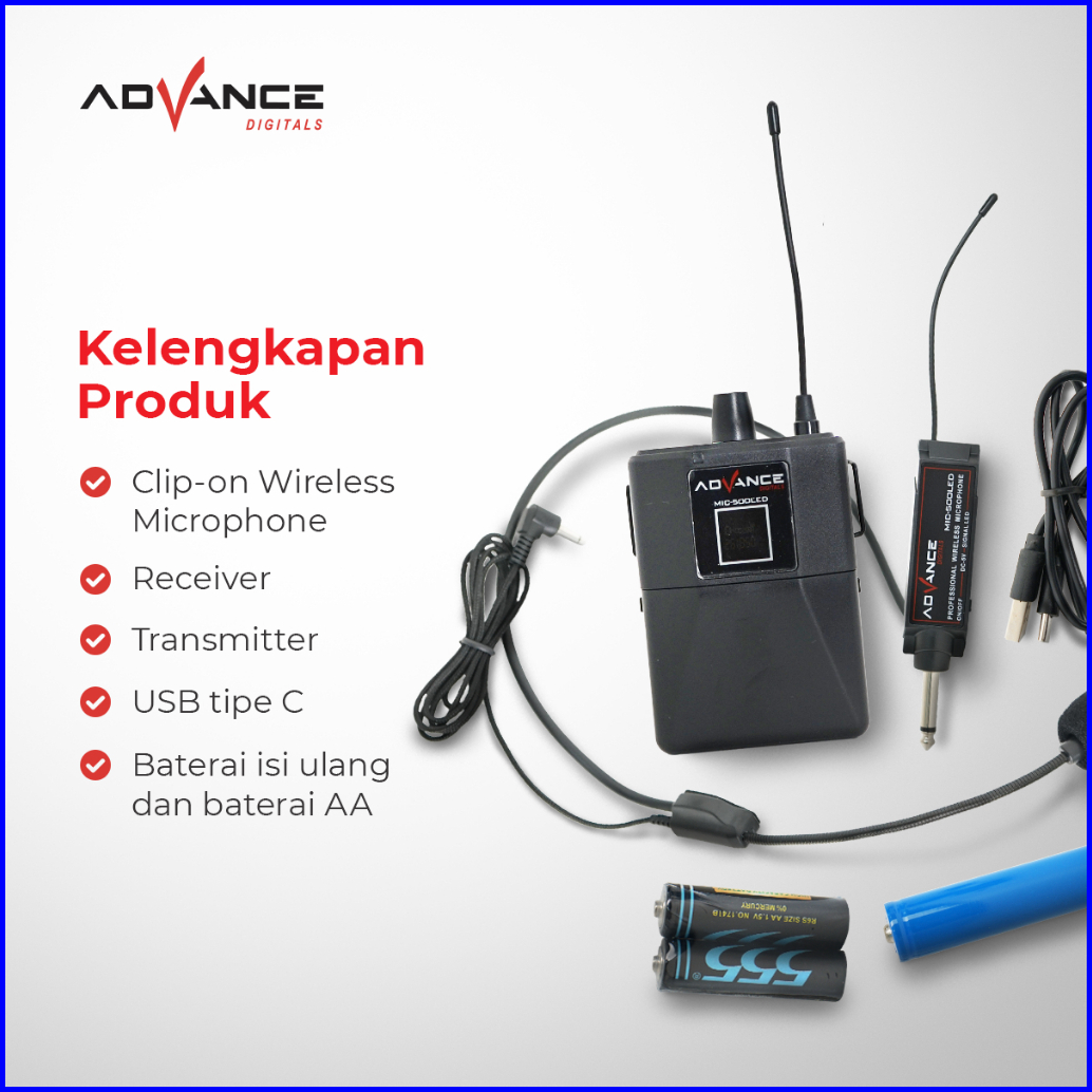 Advance Mic-500 Mic Bando Wireless Mic Clip On Microphone Eksternal