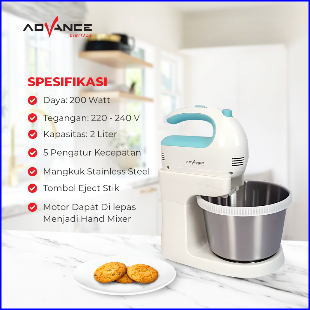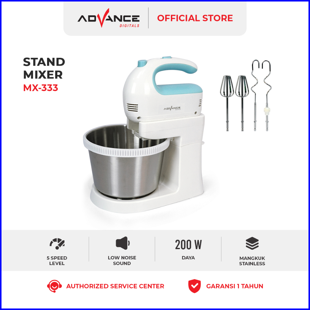 Advance Mx333 Stand Mixer 2in1 200 Watt 2 Liter Free 2 Pengocok Dan Pengaduk 5 Speed Kecepatan Garansi 1 Tahun
