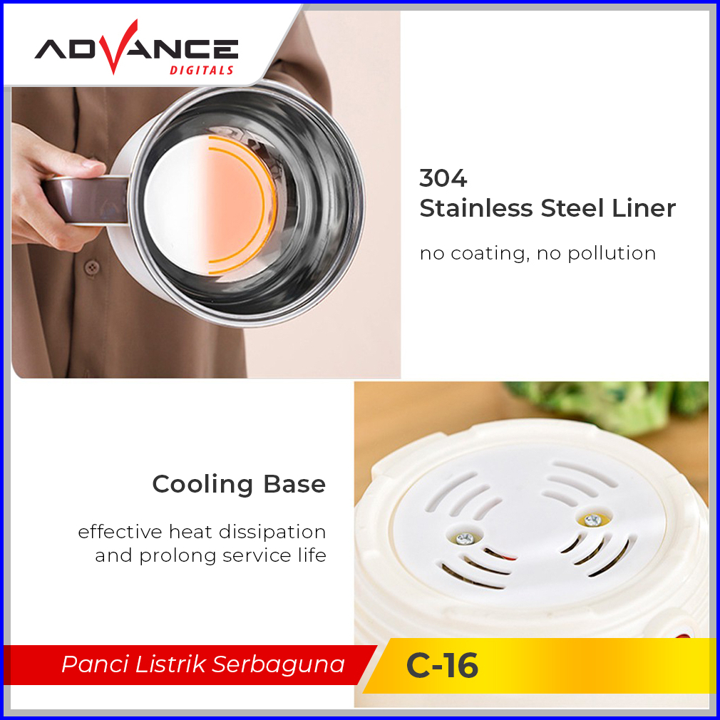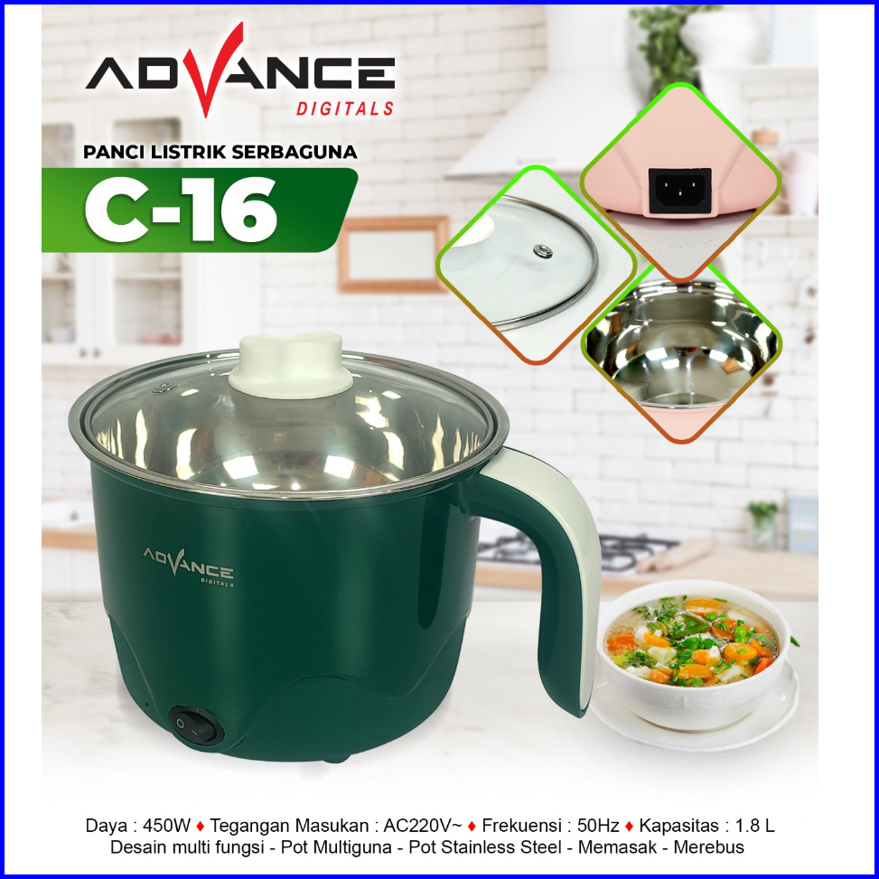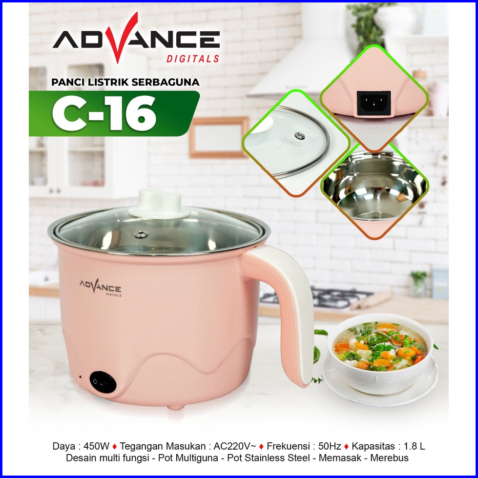 Advance Panci Listrik Multifungsi C16 1.5l Panci Kukusan Steamer Jumbo Panci Eletrik