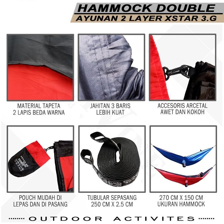 Hammock Double Layer 2 Warna XSTAR3G 270 x 150 cm Ayunan Tempat Tidur Gantung Outdoor Warna Double