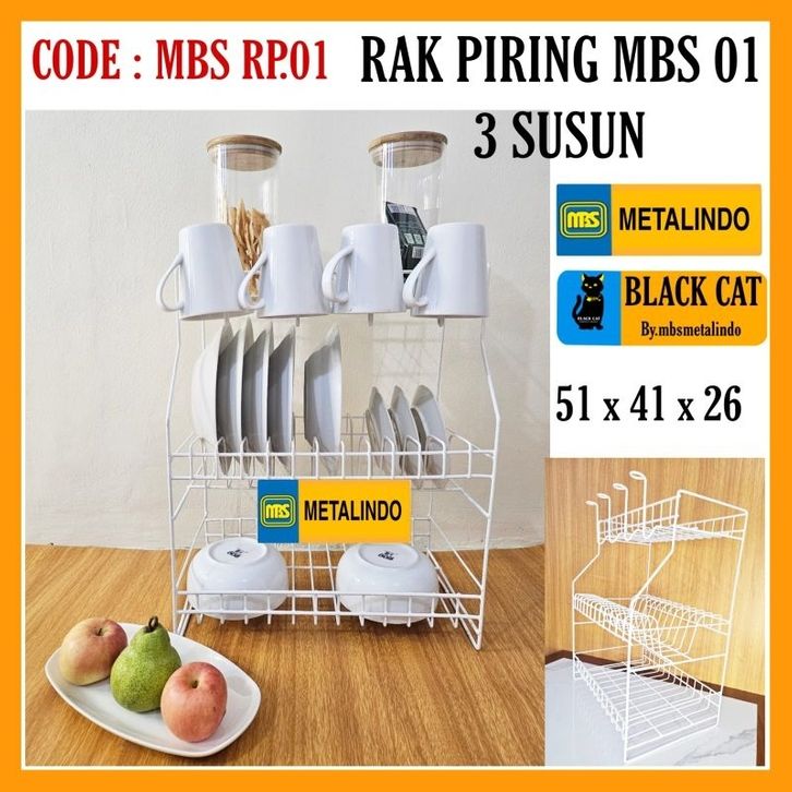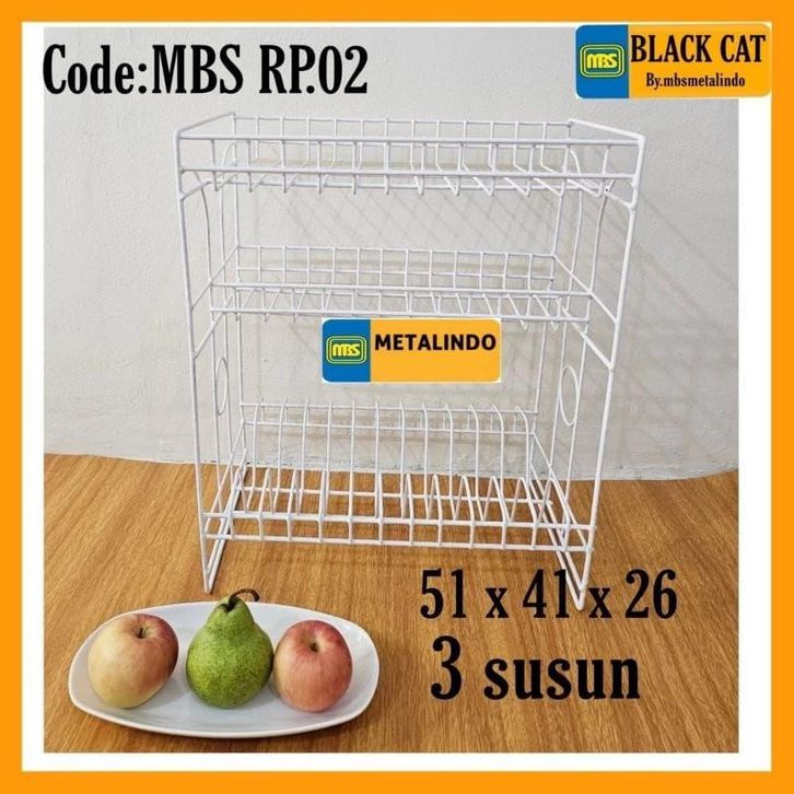 Rak Piring Besi 3 Susun MBS Rak Piring Gelas Rak Piring Wastafel Rak Dapur Serbaguna