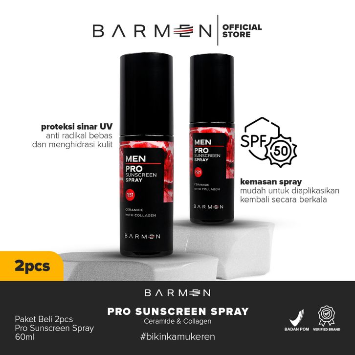 BARMEN PRO Sunscreen Spray Ceramide With Collagen 50 ml 2 Pcs - SPF 50 / Anti UV untuk Wajah Pria