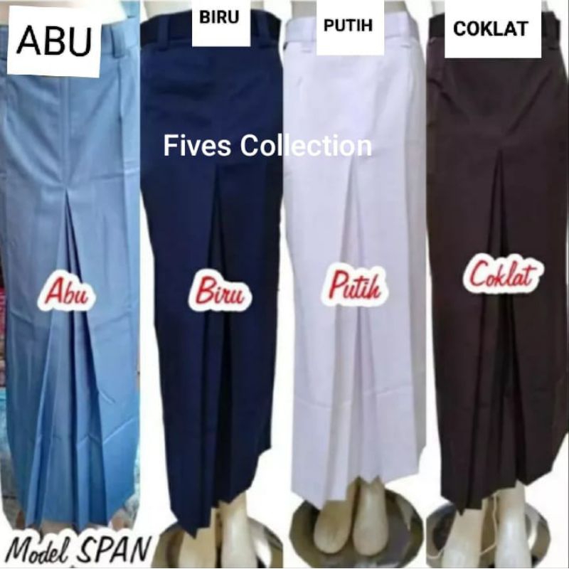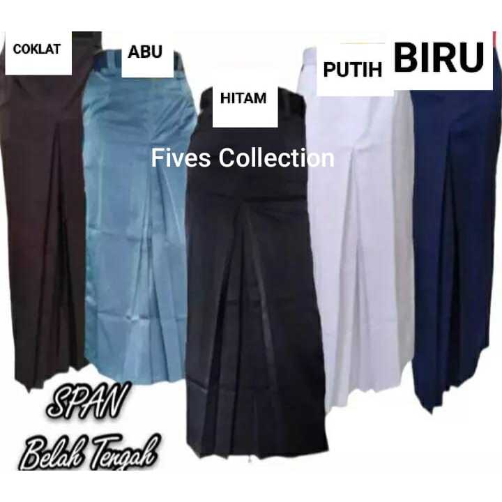 ROK SPAN PANJANG HITAM Rok SPAN BELAH TENGAH Rempel Depan Sekolah Kerja Putih Hitam Abu SMA Biru SMP Coklat Pramuka